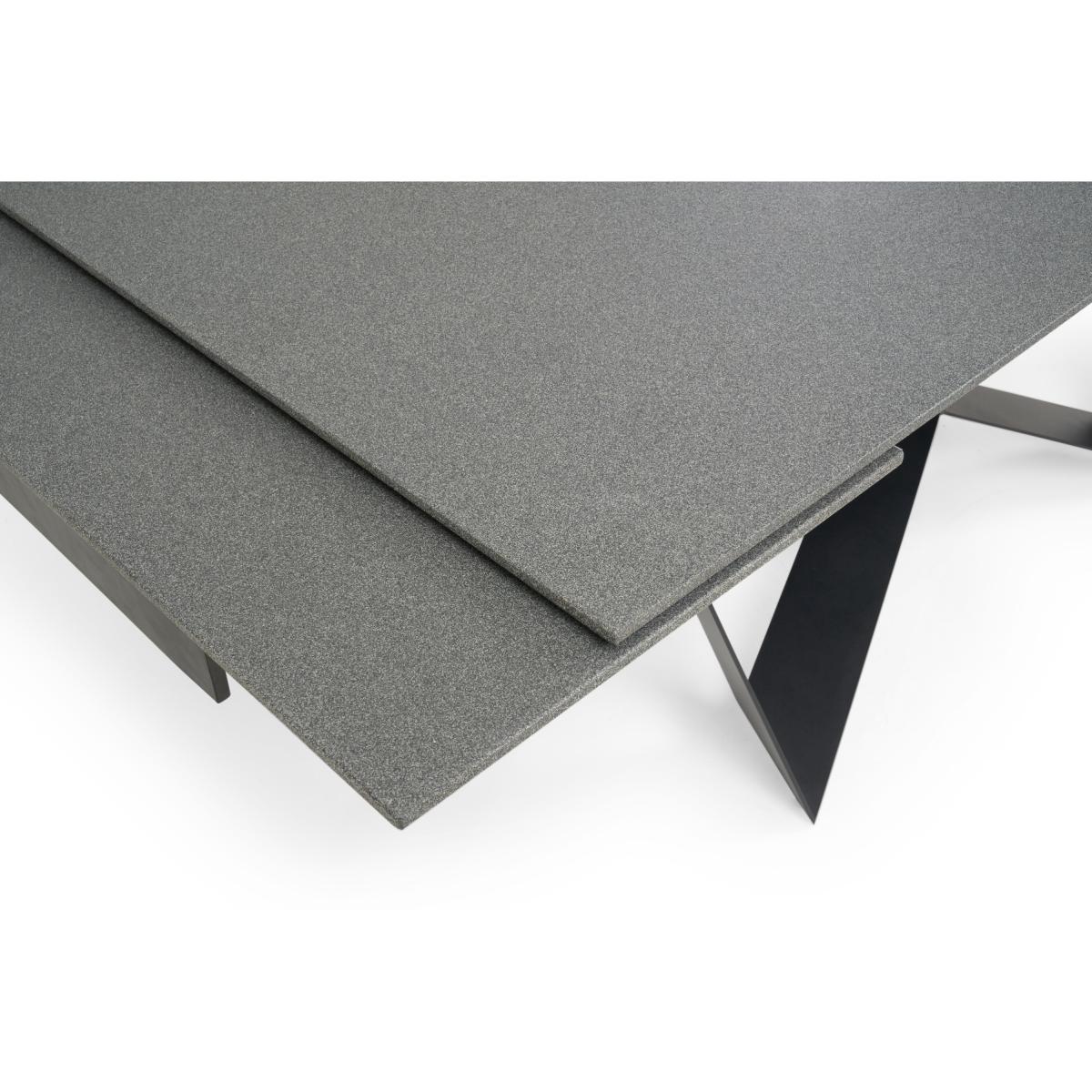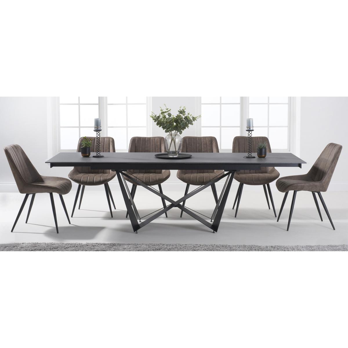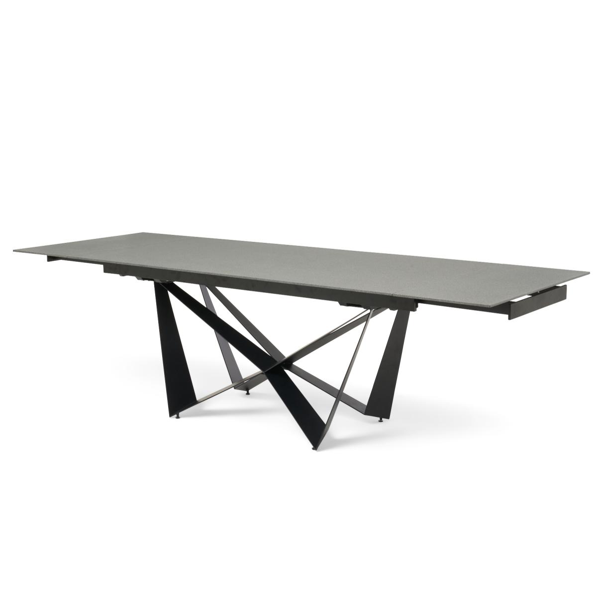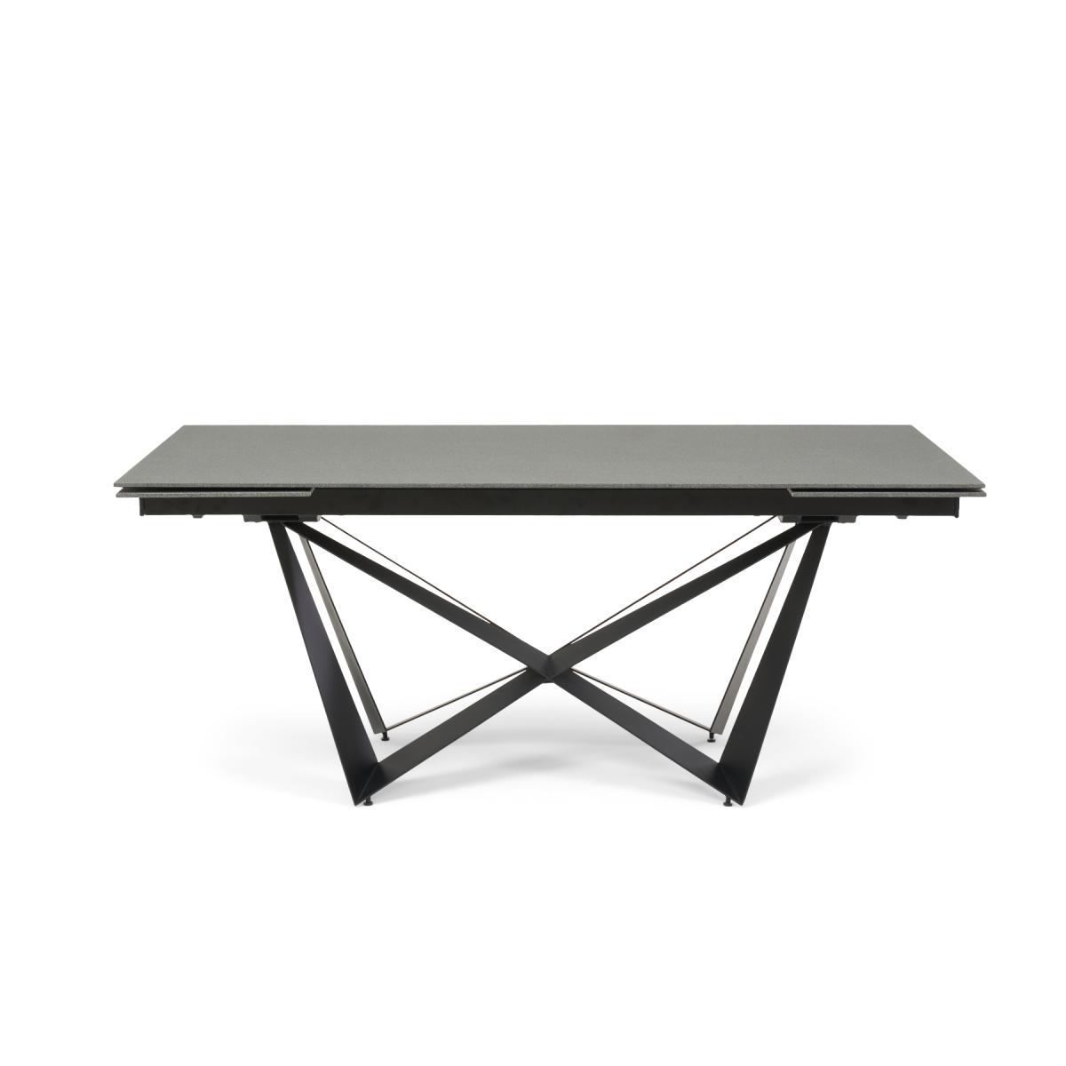 The Blenheim 180cm Extending Grey Stone Dining Table features a unique modern design that makes an impression. Featuring a smooth, durable grey stone-finished table top and sturdy black legs, the table seats 8 and extends to 220cm to seat 12.Stylish large extending dining table Practical and versatile – seats 8 and extends to seat 12 Convenient inbuilt extension feature. Smooth, grey stone-finishedtable top is simply wiped clean3mm stone finish on 8mm of glass Durable black powder coated metal legs with unique modern design provide great support. Extends to 220cm3mm stone finish on 8mm of glas