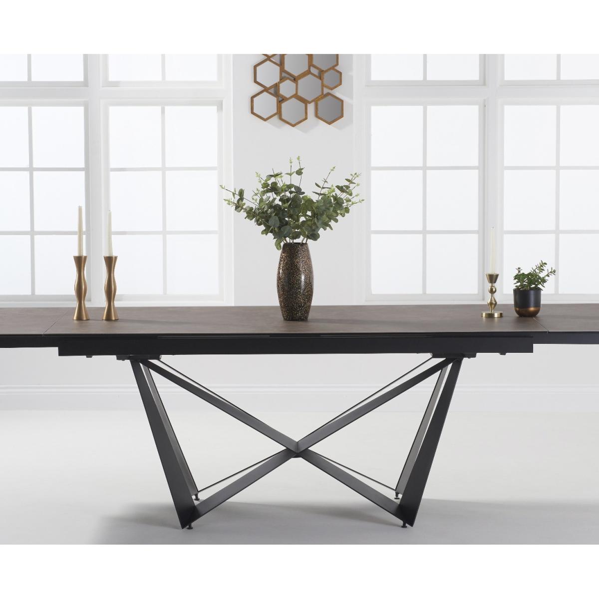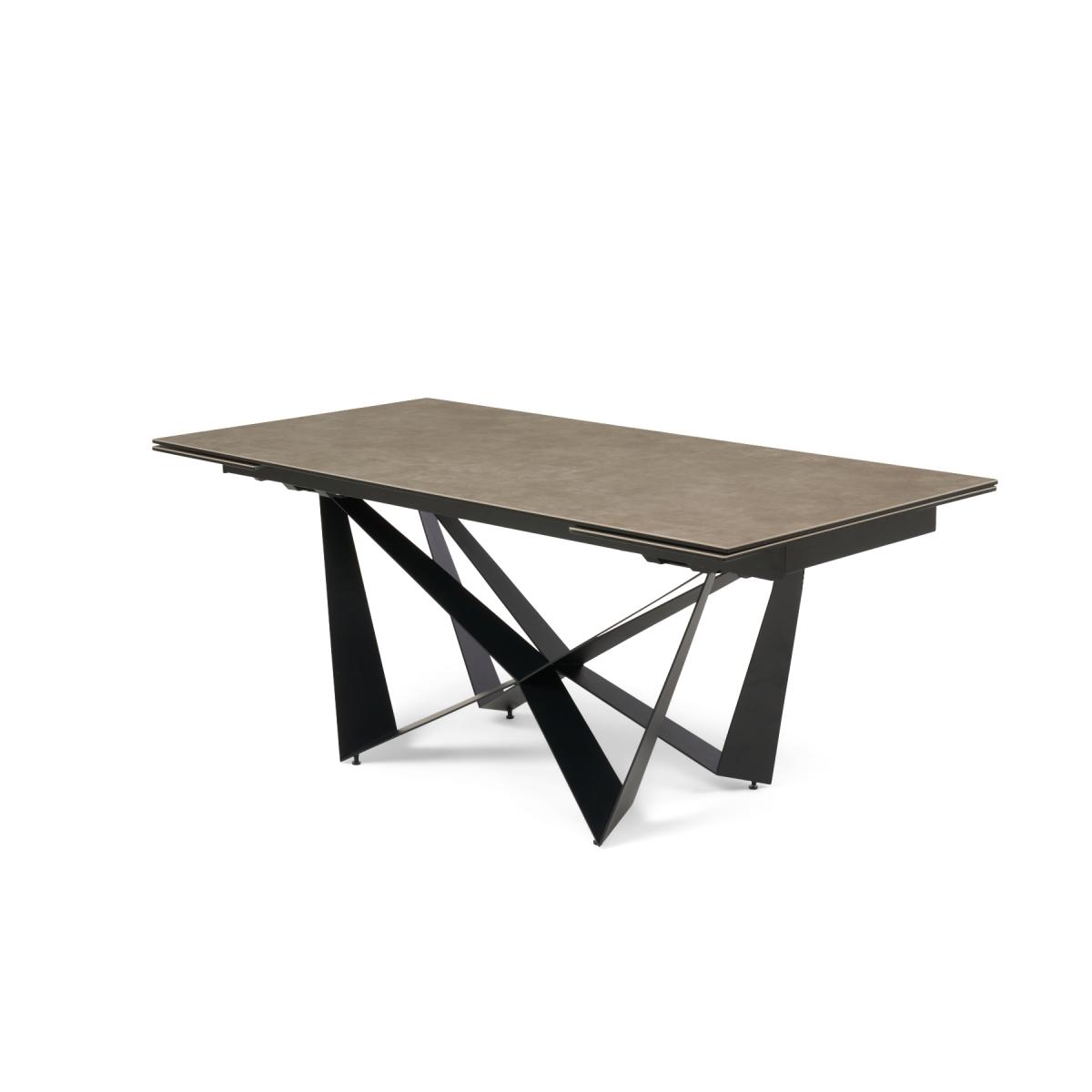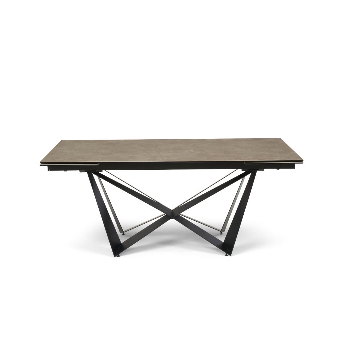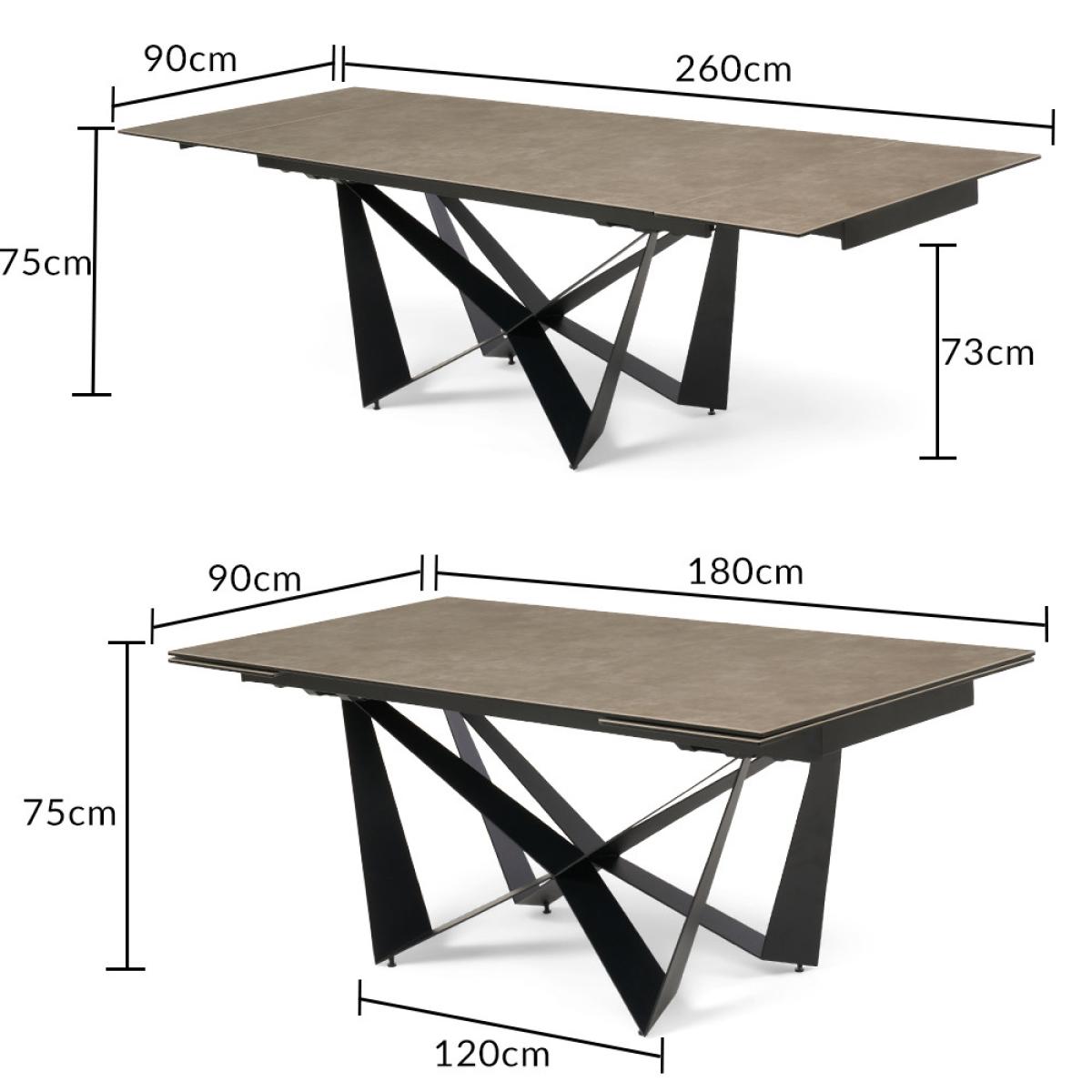 The Blenheim 180cm Extending Mink Ceramic Dining Table is a sleek, statement choice. The modern dining table comfortably seats 8 and extends via an inbuilt feature to seat 12. This standout table features a smooth mink ceramic table top and unique, durable black legs. Large extending dining table with sleek modern design. Seats 8 and extends to 220cm in length to seat 12. Handy inbuilt extension feature. Smooth mink ceramic surface is simply wiped clean3mm ceramic finish on 8mm of glass. Strong, black powder coated metal legs feature a unique angular design