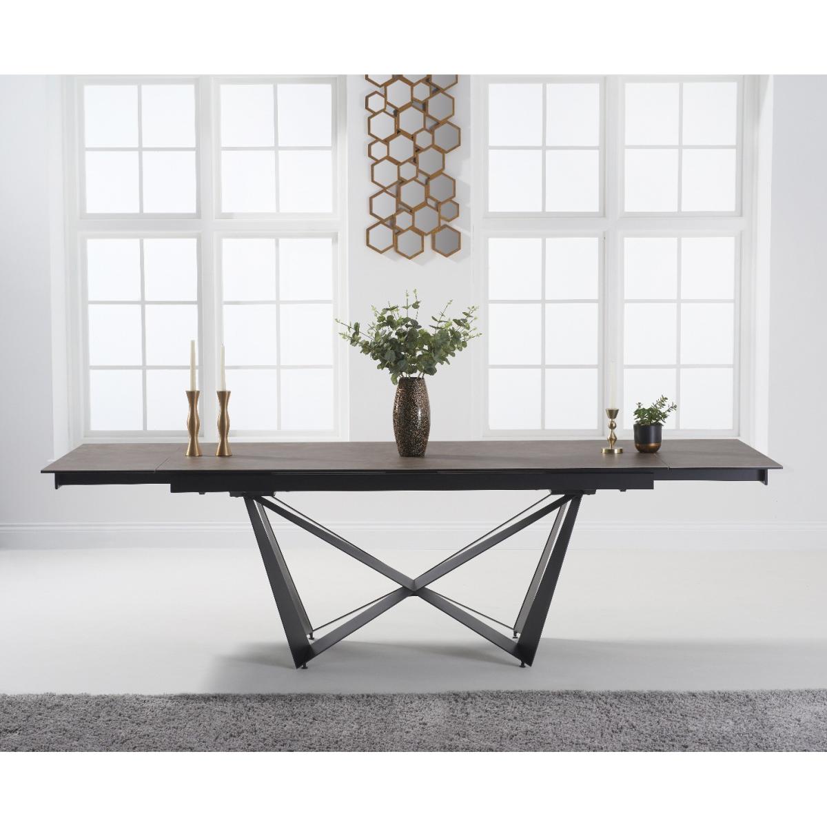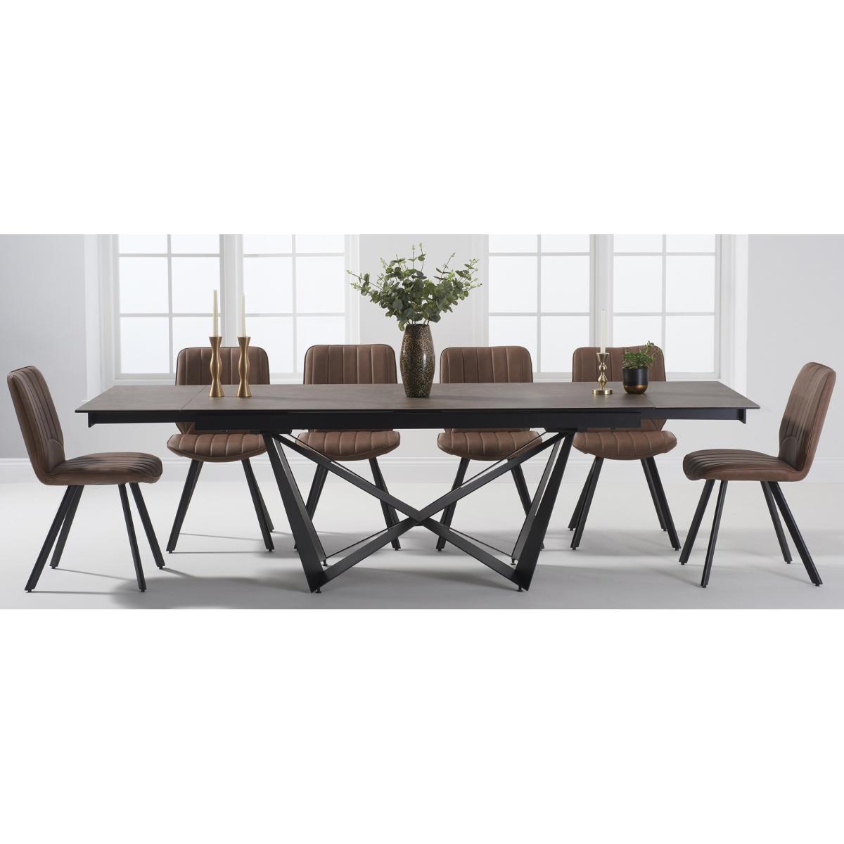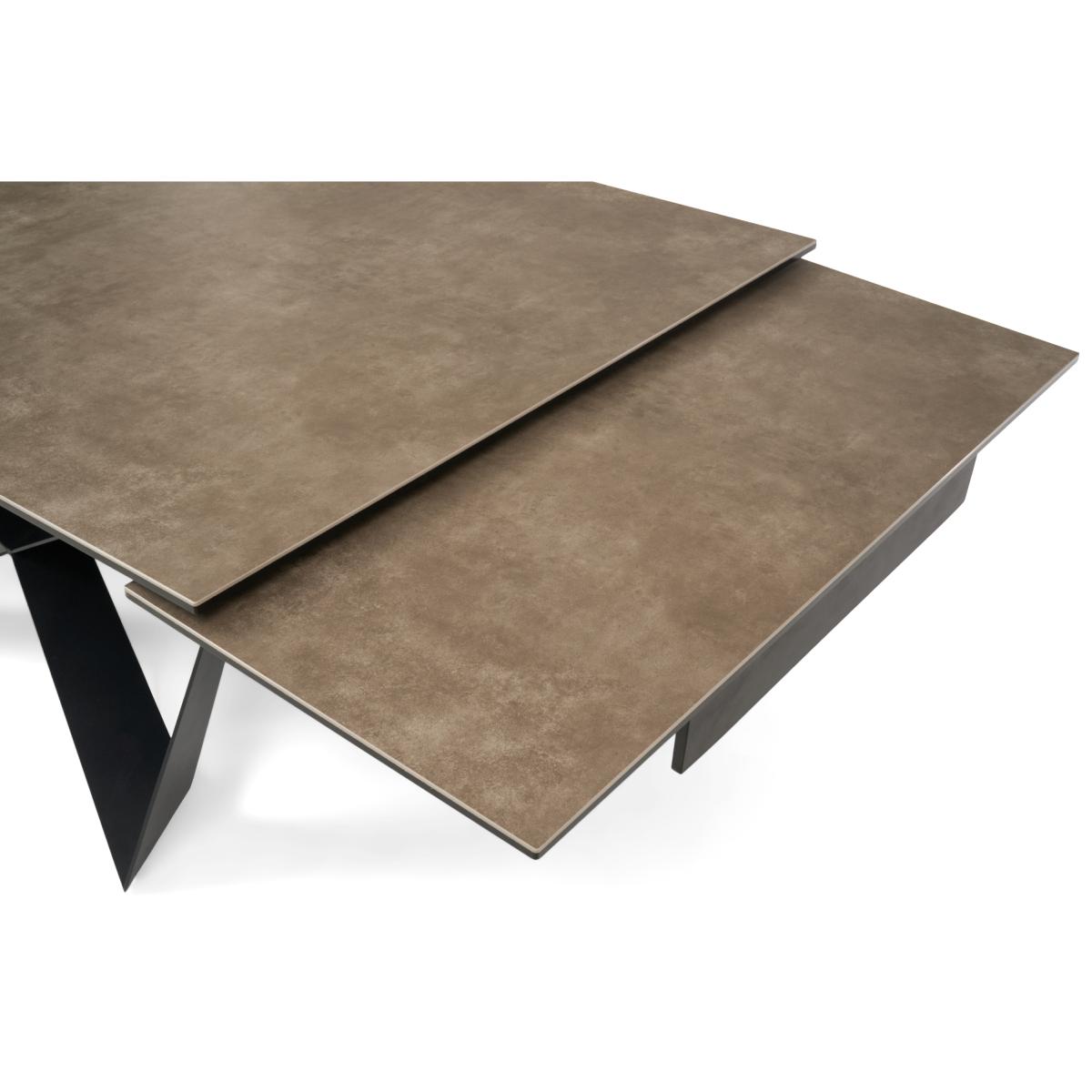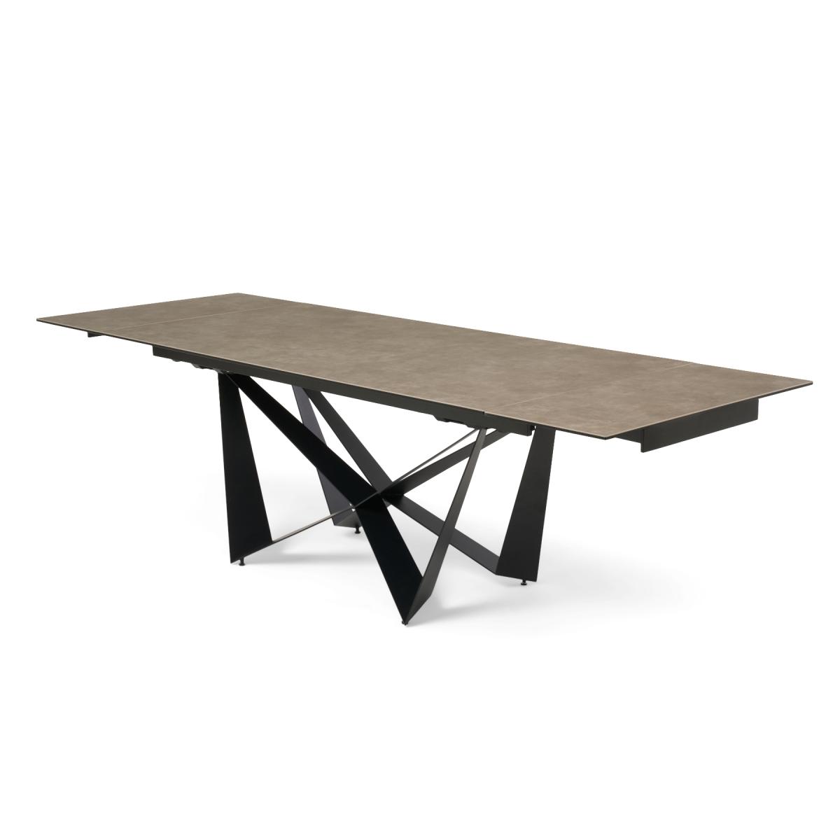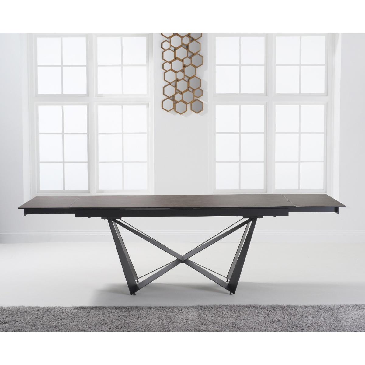 The Blenheim 180cm Extending Mink Ceramic Dining Table is a sleek, statement choice. The modern dining table comfortably seats 8 and extends via an inbuilt feature to seat 12. This standout table features a smooth mink ceramic table top and unique, durable black legs. Large extending dining table with sleek modern design. Seats 8 and extends to 220cm in length to seat 12. Handy inbuilt extension feature. Smooth mink ceramic surface is simply wiped clean3mm ceramic finish on 8mm of glass. Strong, black powder coated metal legs feature a unique angular design