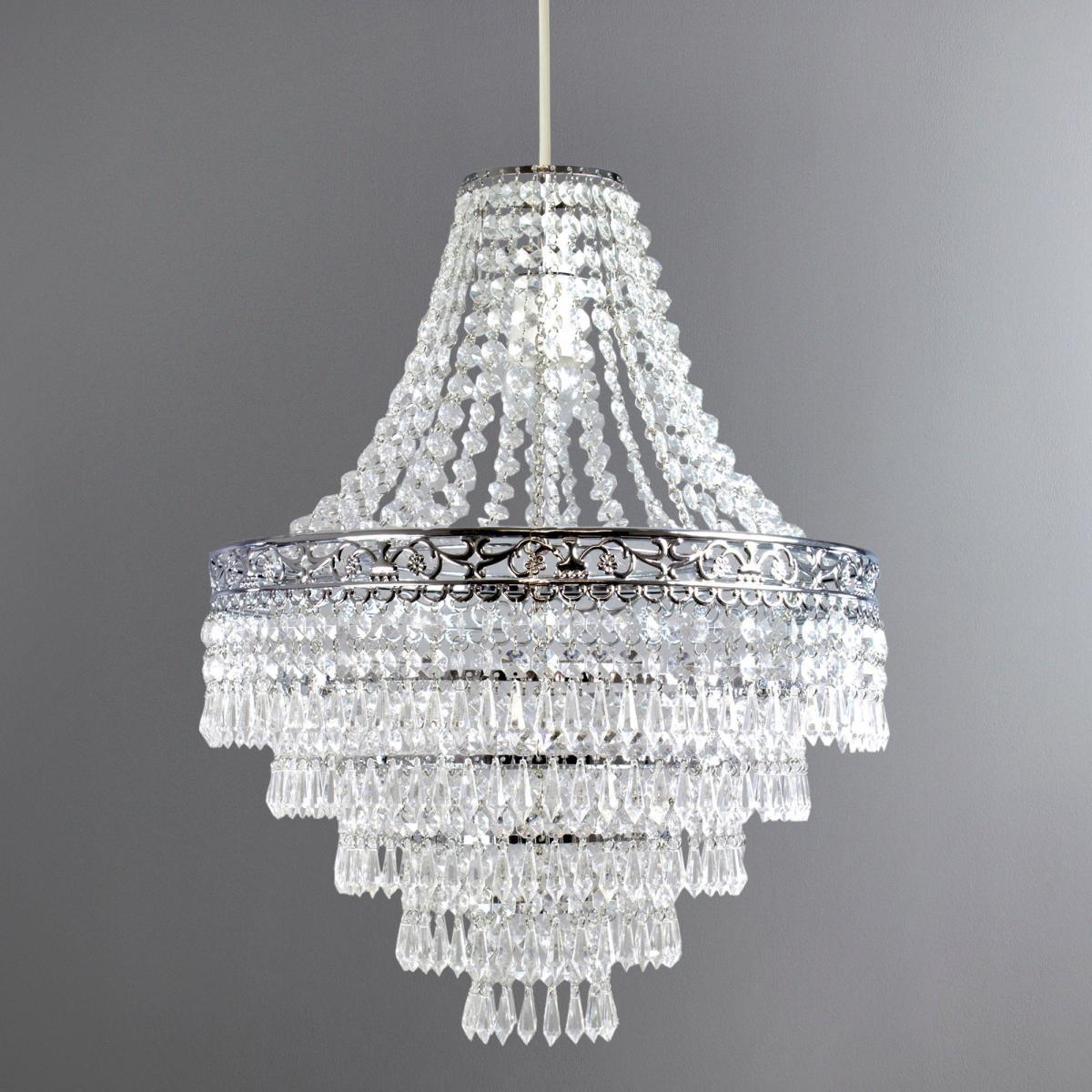 Add grandeur and beauty to your home with our silver Blenheim acrylic drop pendant, featuring hanging acrylic droplets that will create an opulent look in your home. Easy to install for your convenience, the light pendant will hang beautifully and will disperse light magnificently across your room.