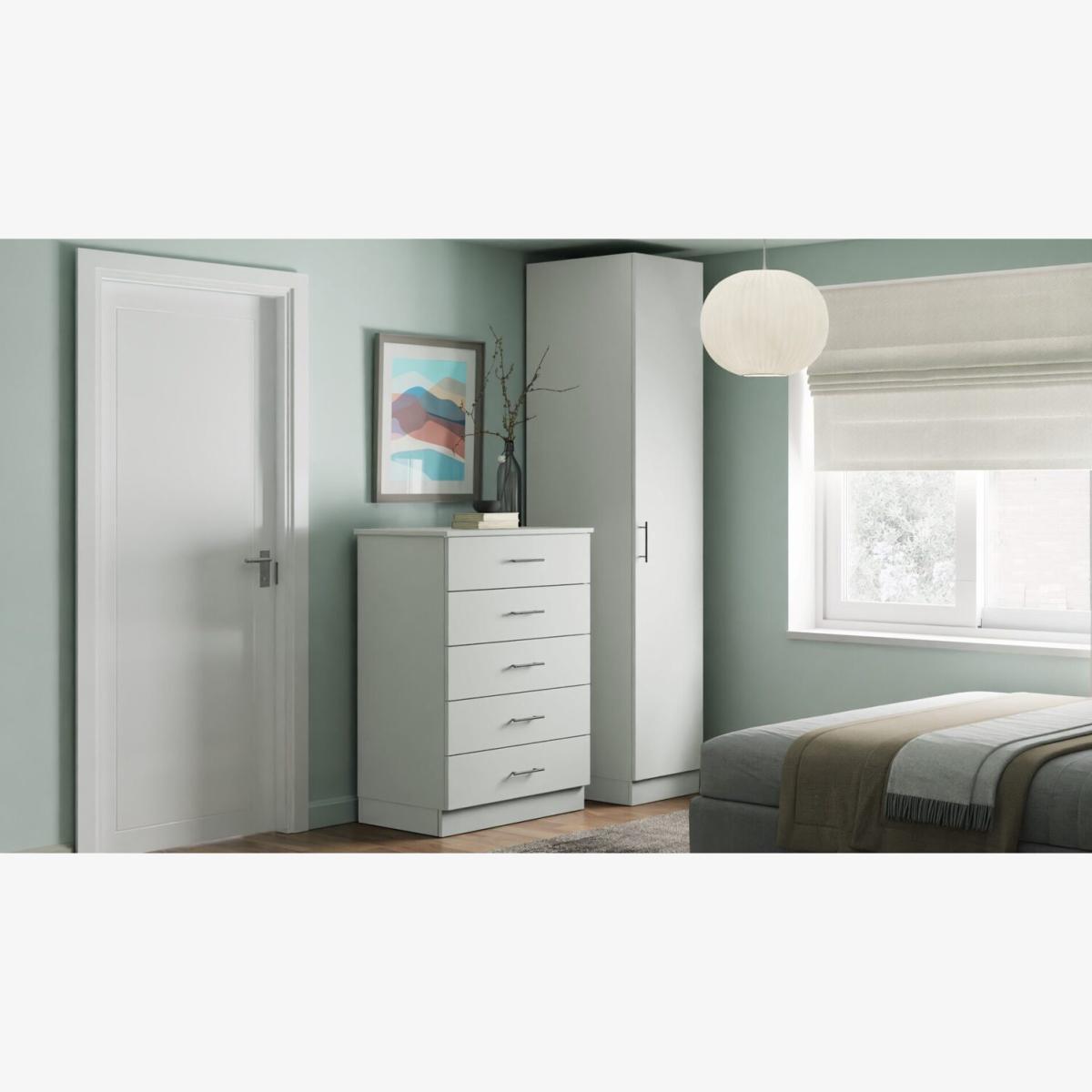 I’m a fan of this light-grey corner wardrobe for its clean, slab-front design and the way it makes the most of awkward angles. It suits contemporary, Scandi or minimalist schemes and pairs neatly with pale timber floors or muted accent walls. For styling, keep the top clear or add a simple vase of dried foliage to echo the soft tone. Match it with low chests or floating shelves in the same finish to create a cohesive look, and consider slim metal handles if you want a touch of contrast without losing the streamlined feel.