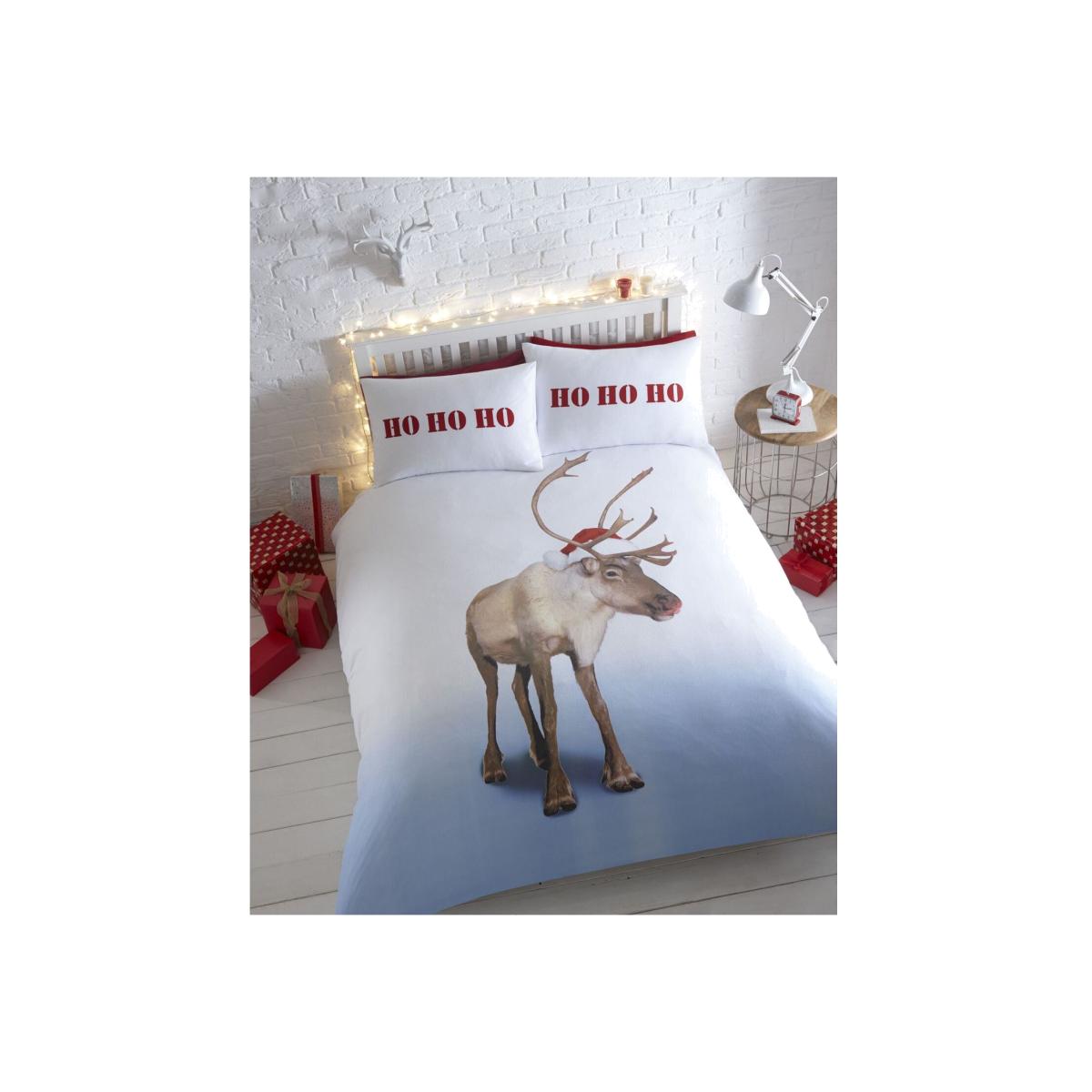 I love this festive duvet set for its playful design and cheerful yellow tone, making it a great addition to a cosy, holiday-themed bedroom. It works particularly well in modern or rustic interiors where a touch of whimsy can brighten the space. For styling, pair it with neutral, complementary bedding and add some cosy throws in complementary colours like deep reds or forest greens. This set also lends itself well to layering with seasonal accessories-think soft fairy lights, decorative cushions, or even a touch of faux fur-to create a warm, inviting atmosphere. Its fun reindeer motif makes it perfect for a family space or a child's room during Christmas, but with tasteful styling, it can also add a fun, seasonal vibrance to more grown-up spaces.