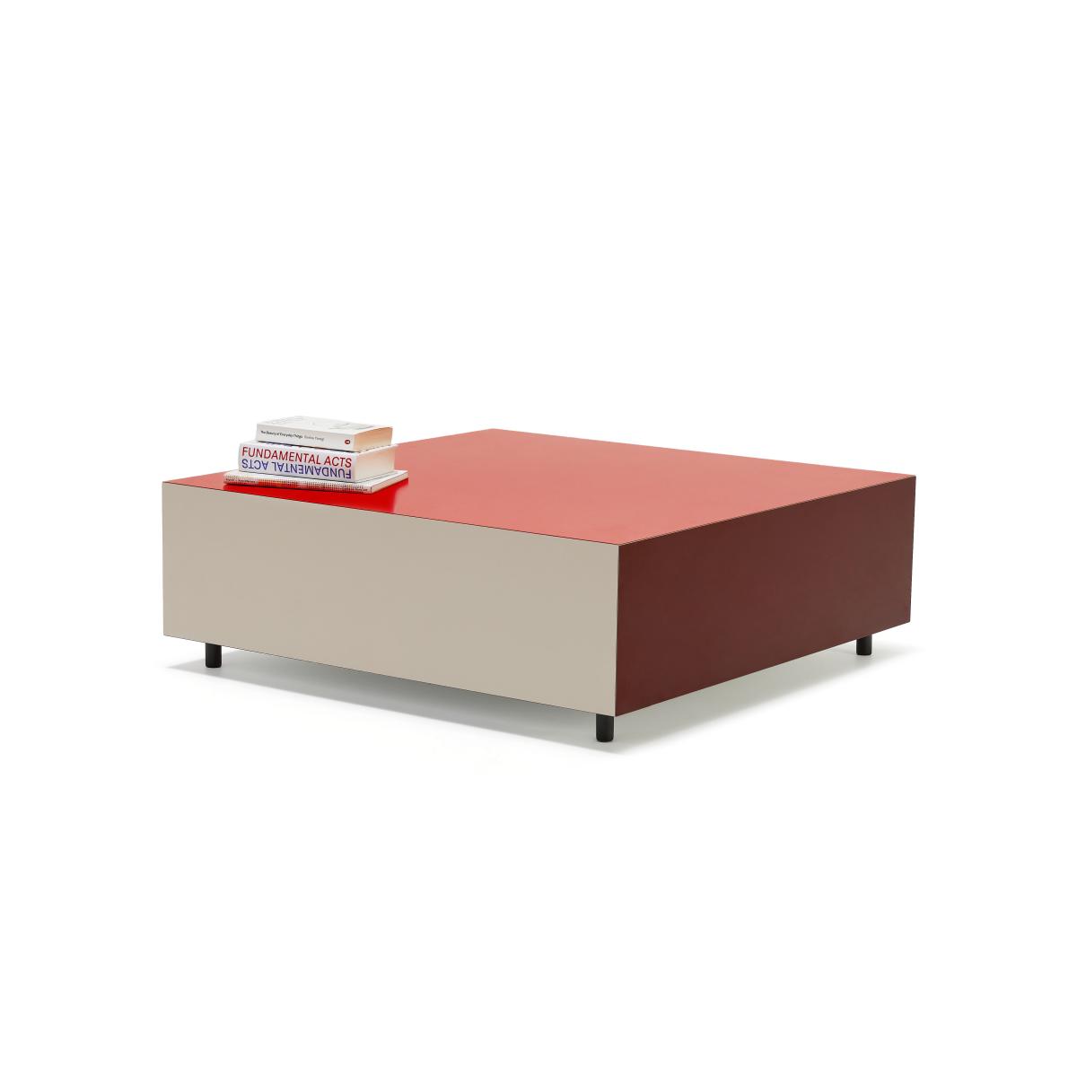 Bloc Medium Coffee table wood red / 1 Drawer - 85 x 85 cm - Established & Sons