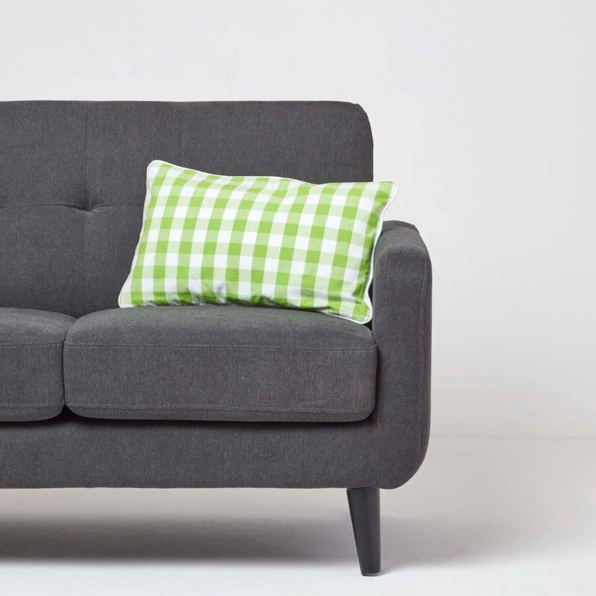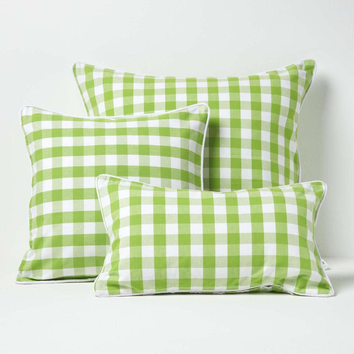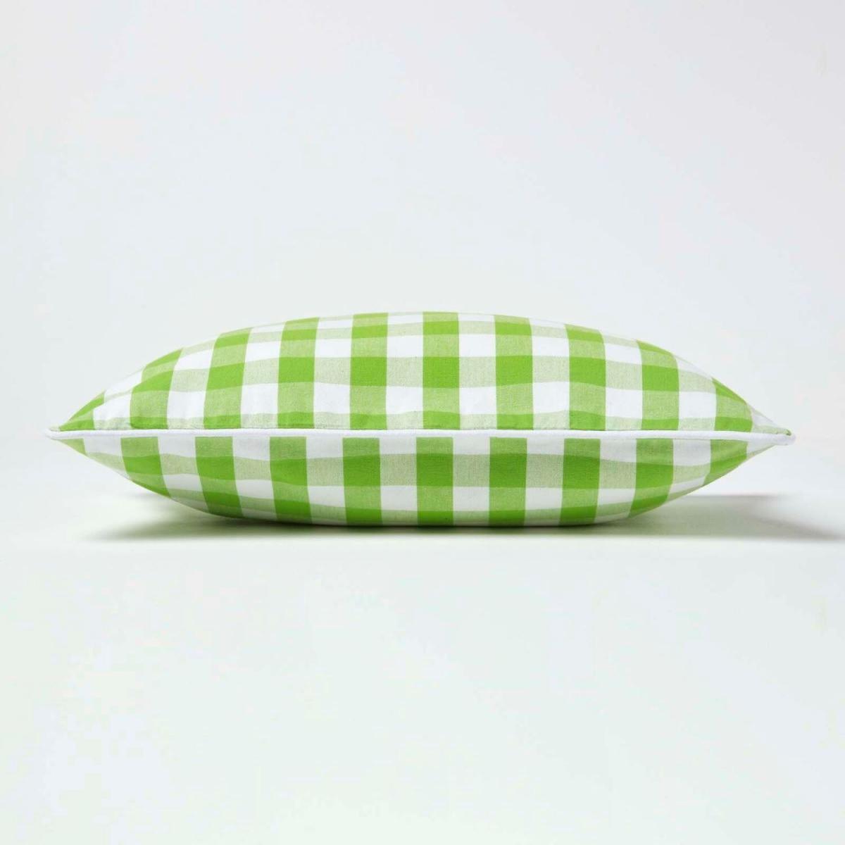 Block Check Cotton Gingham Cushion Cover - Green / 50cm