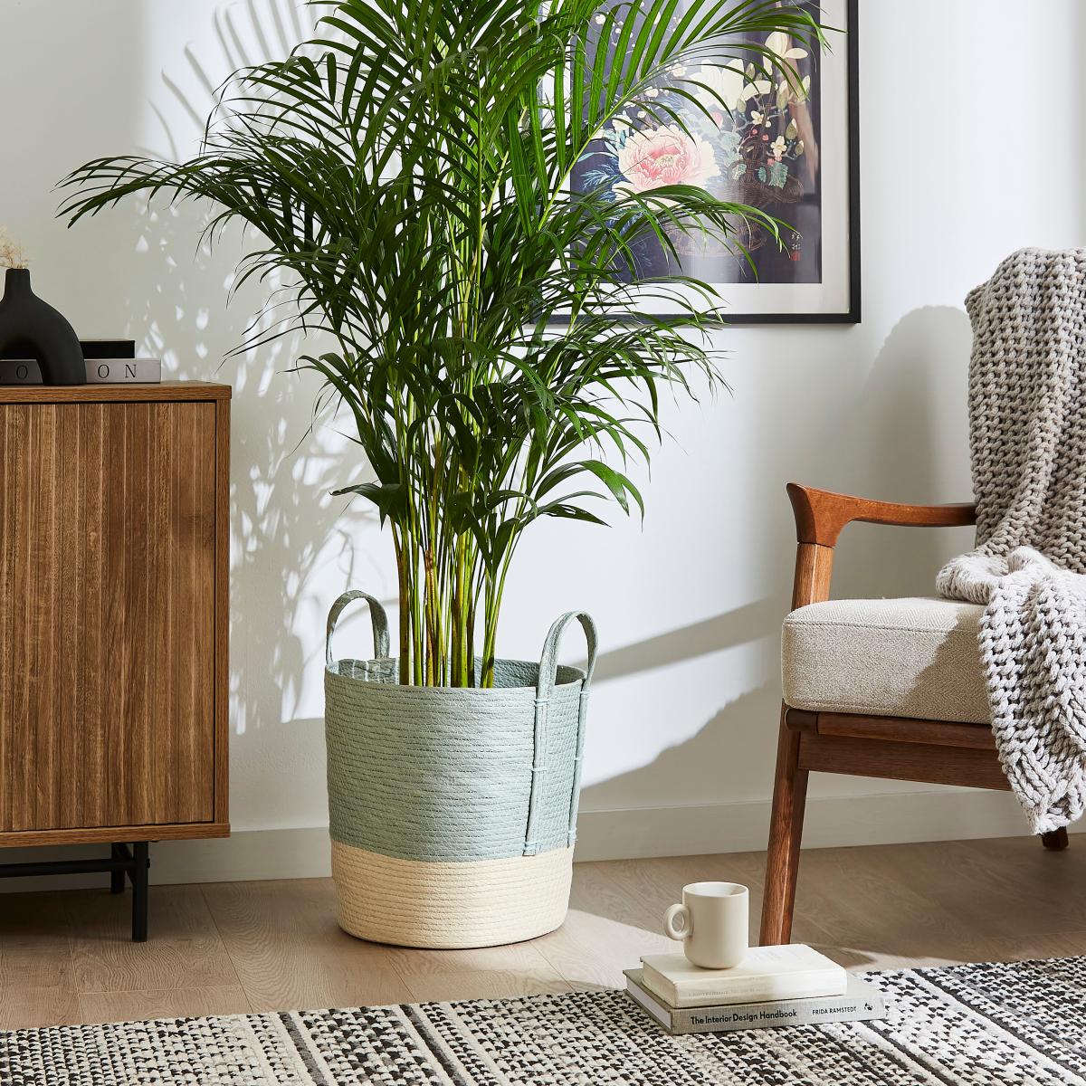 I love this basket for its versatile, muted sage tone that adds a calm, natural feel to any space. It works particularly well in Scandi or minimalist interiors, but can also soften rustic or coastal styles. Practical styling tips include using it for practical storage-like keeping magazines, throws, or storage for bathroom essentials-while its neutral shade allows it to blend seamlessly without cluttering the look. Pair it with other textured natural materials such as wood or linen for an effortless, cohesive aesthetic, or use it as a standalone statement piece to introduce a subtle dash of colour and organisation.