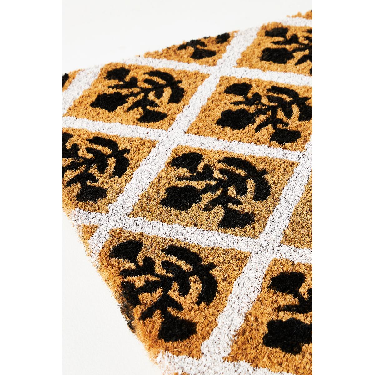 100% Natural Coir Fiber Spot clean Imported Block Print Doormat by Anthropologie in Black Size: 18" x30"