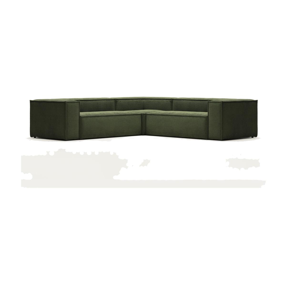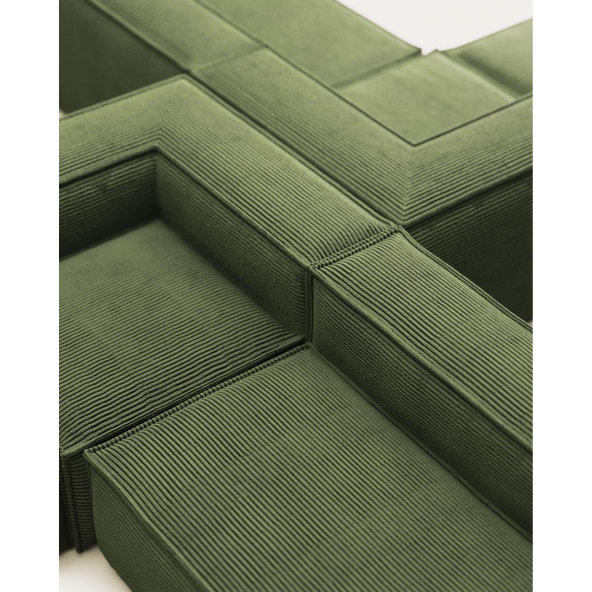 Blok 4 seater corner sofa in green corduroy, 290 x 290 cm FR