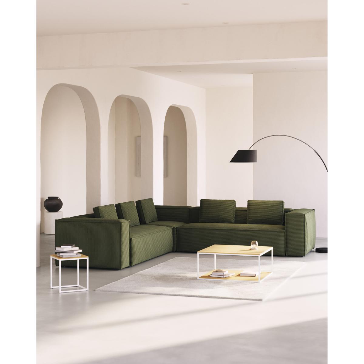 Blok 6 seater corner sofa in green corduroy, 320 x 320 cm FR