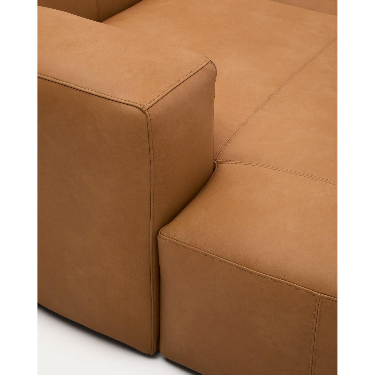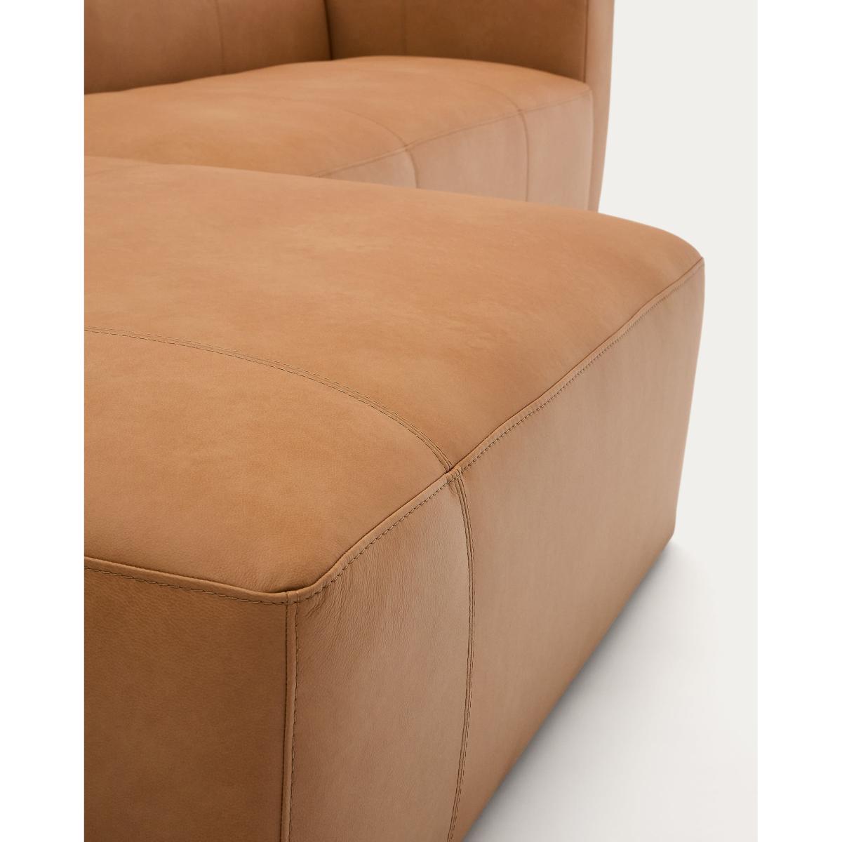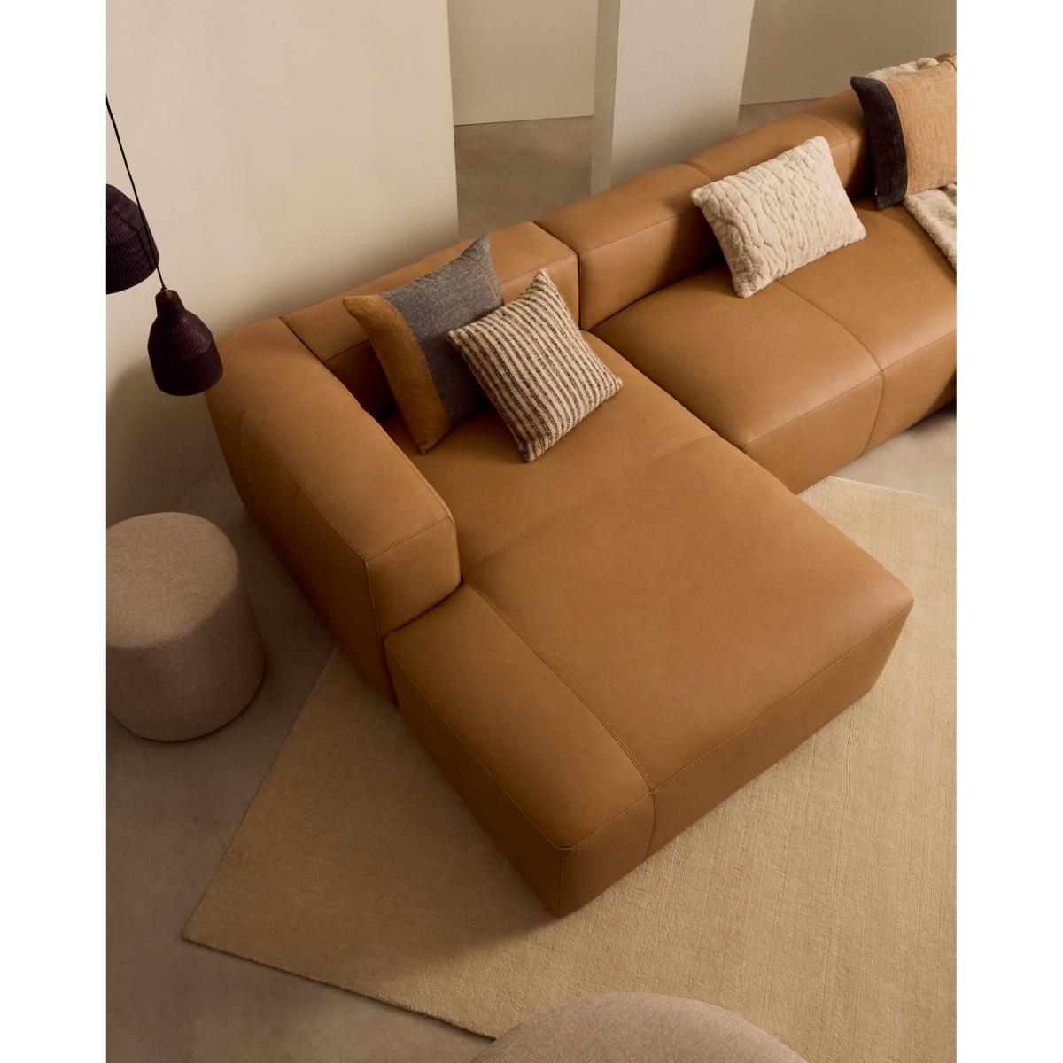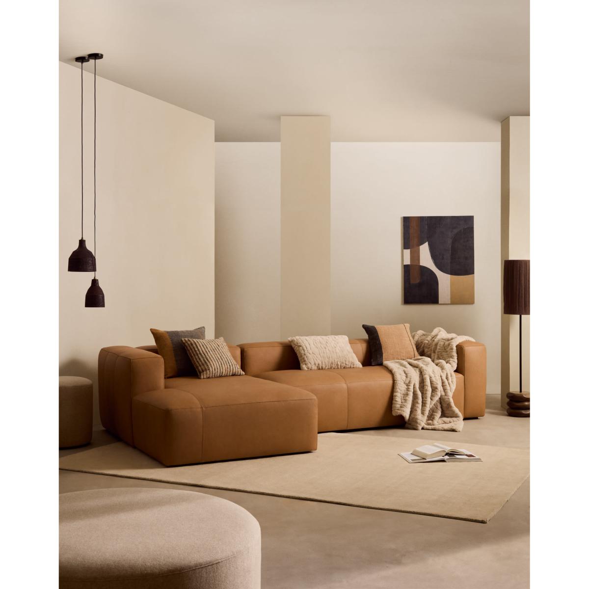 The Blok brown leather 4-seater sofa with a left chaise longue is a versatile piece that works well in both modern and industrial-inspired interiors. I love its clean, minimalist silhouette and the warmth that the leather adds to a space, making it a focal point that’s both stylish and practical. It’s perfect for open-plan living areas or larger sitting rooms, providing ample seating without overwhelming the space. To style around it, consider pairing with textured throws and cushions for added comfort and visual interest, or complementing it with natural materials like wood or metal accessories for a balanced look. This sofa's contemporary shape also lends itself well to layering with varied rug textures and minimal accessories for a sophisticated but inviting vibe.