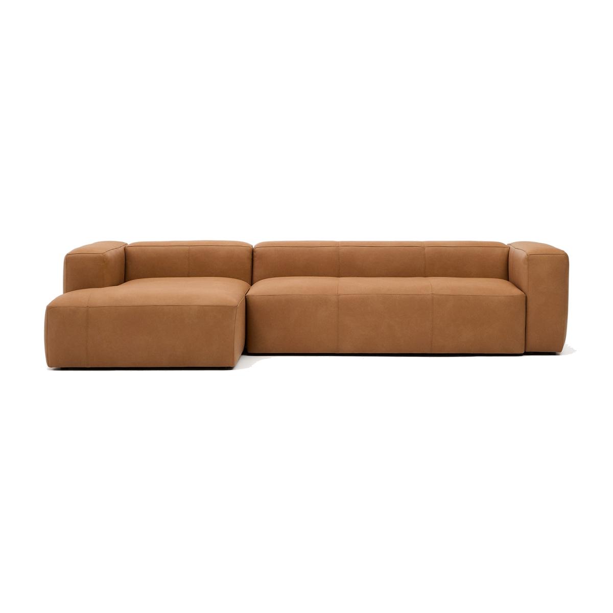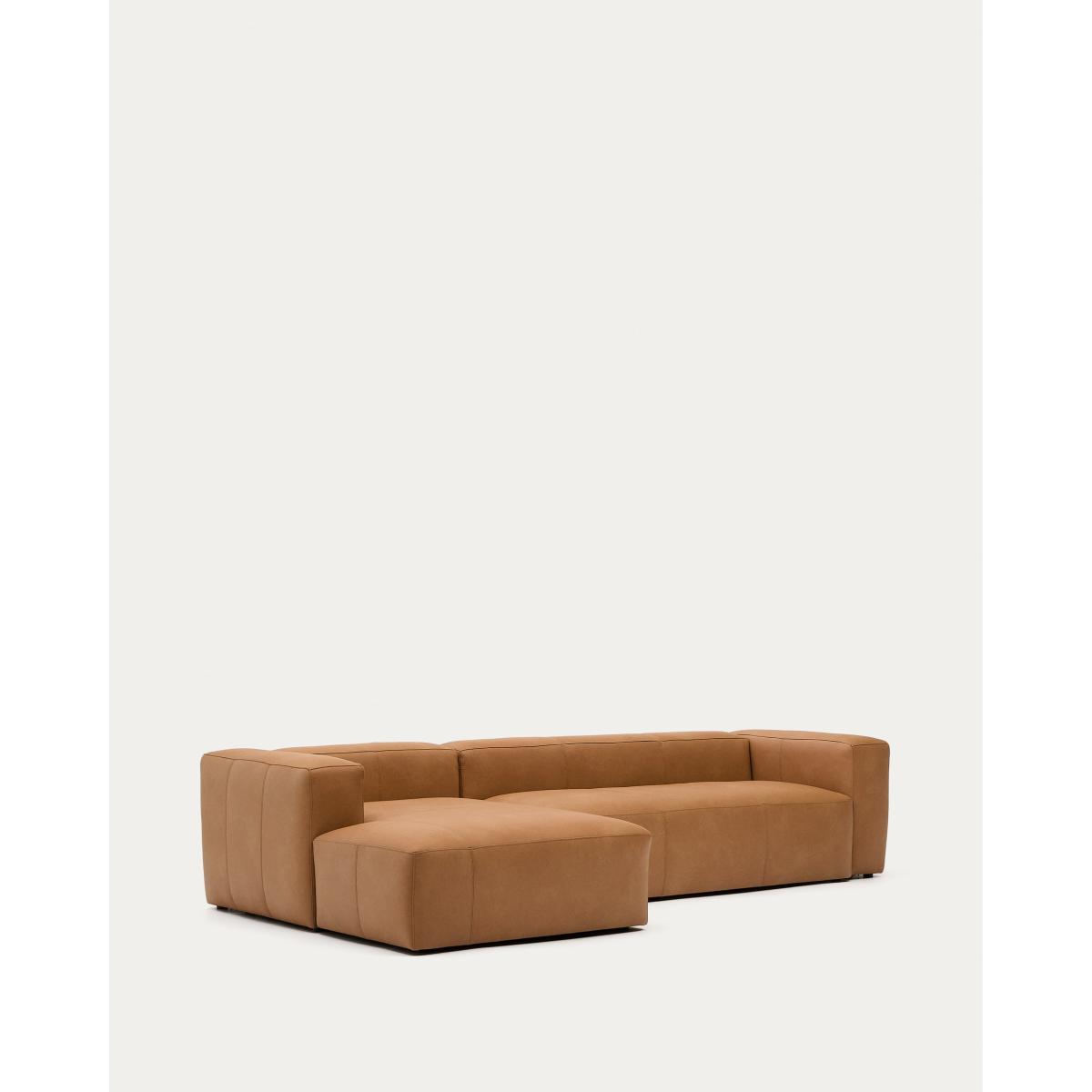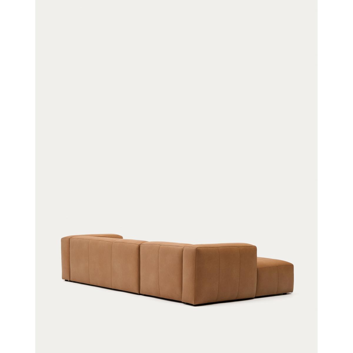 Blok brown leather 4-seater sofa, left chaise longue 330 cm