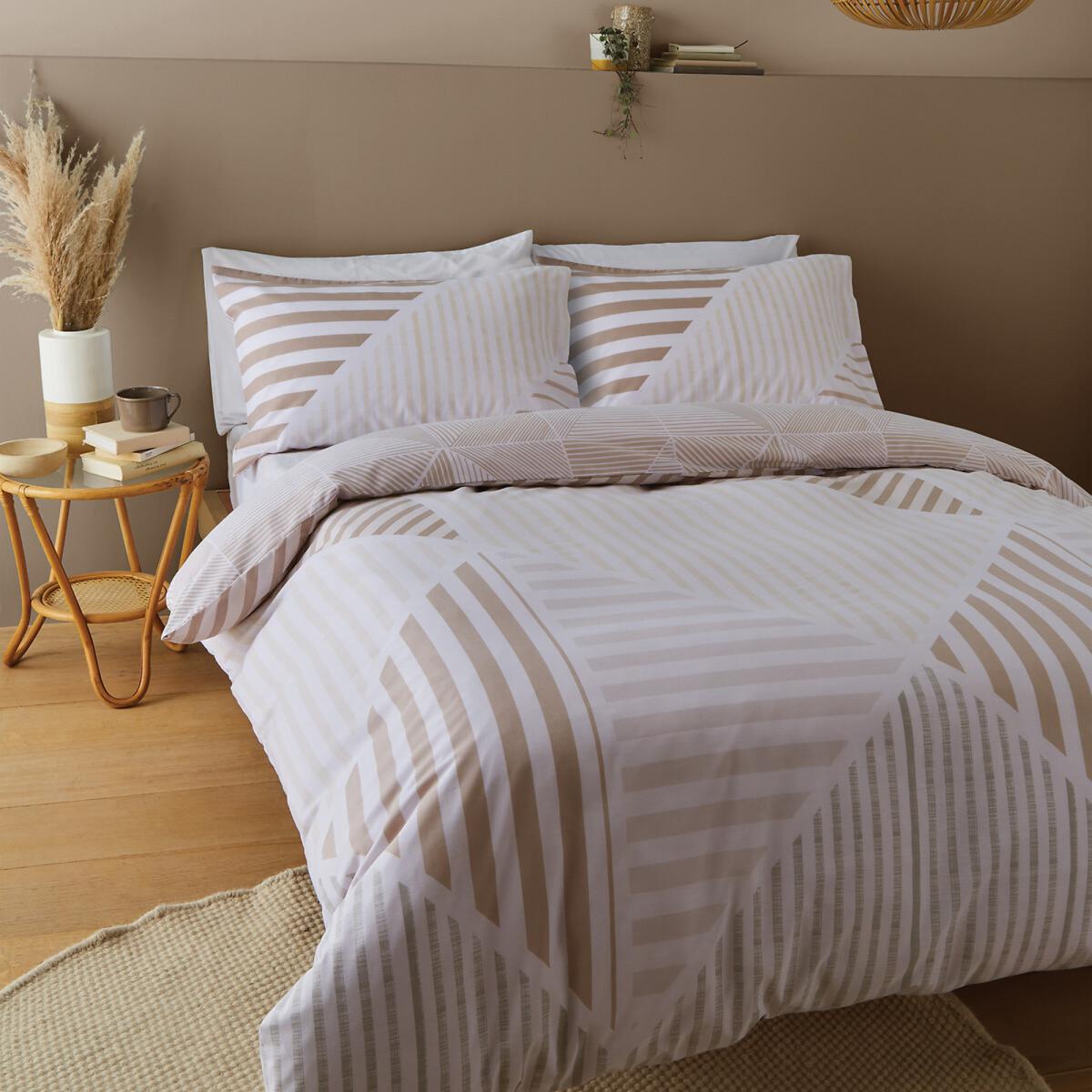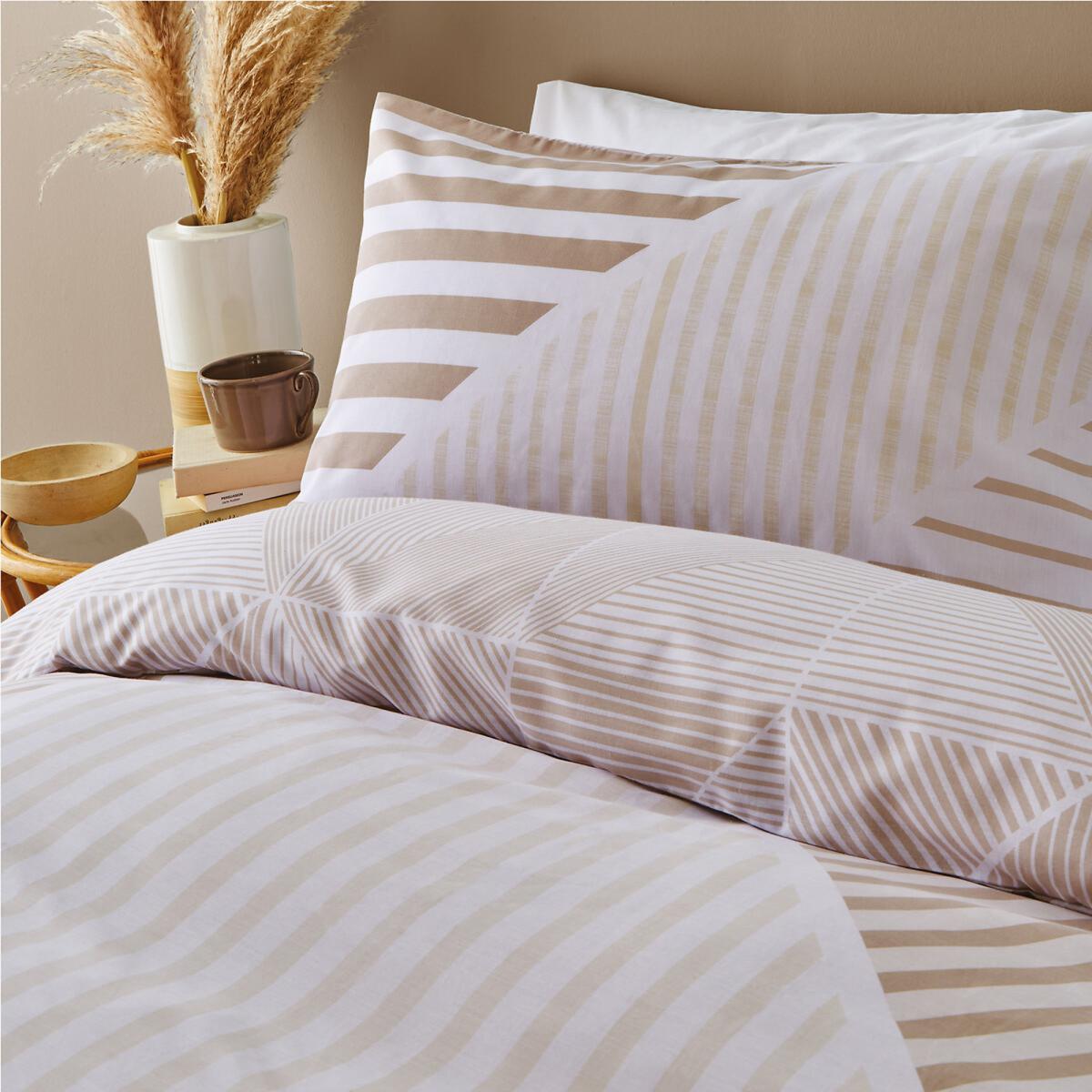 Catherine Lansfield is renowned for style and quality - designed and developed in Great Britain. Taking inspiration from movement in the marking making trend, different scale graphic linear blocks in natural earthy tones create contemporary urban style bedlinen. A smaller scale linear geo reverse is available for alternative styling. This duvet set is fully reversible with branded button fastenings and side label detailing.. Made from Easy care 52% Polyester 48% Cotton, requires minimal ironing. Machine Wash at 40 Degrees. Single Duvet Set - 135x200cm + 1 50x75cm Pillowcase, Double Duvet Set- 200x200cm + 2 50x70cm Pillowcases, King Duvet Set - 220x230cm + 2 50x75cm Pillowcases and Super King Set - 220x260 +2 50x75cm Pillowcases. This product will be dispatched by one of our trusted suppliers. You’ll be contacted by their selected courier about your delivery.