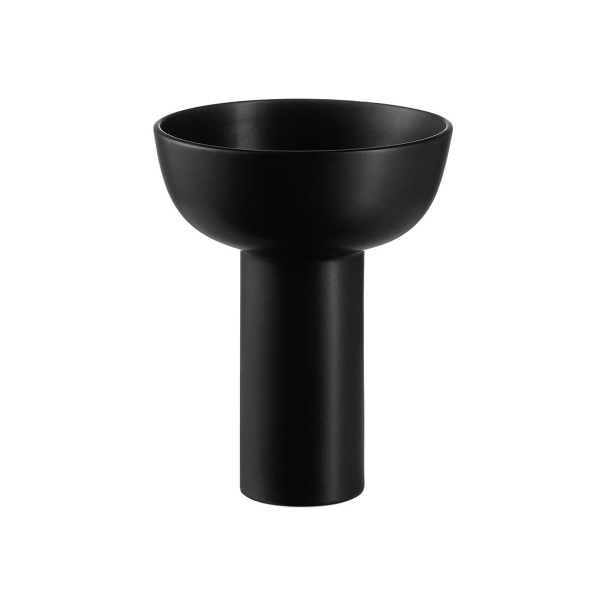 I love this bowl-style vase for its sleek, minimalist design and versatile colour palette. The black finish makes it easy to integrate into various interiors, from contemporary urban spaces to more industrial or monochrome schemes. Its sturdy, sculptural form works well as a statement piece on a console, side table, or even on open shelving. For styling tips, consider pairing it with simple, elegant blooms like hyacinths or tulips for a fresh touch, or keep it empty and let its form shine. It’s equally effective when grouped with other san-serif ceramics or metallic accents, providing a modern, structured aesthetic that remains practical and stylish.