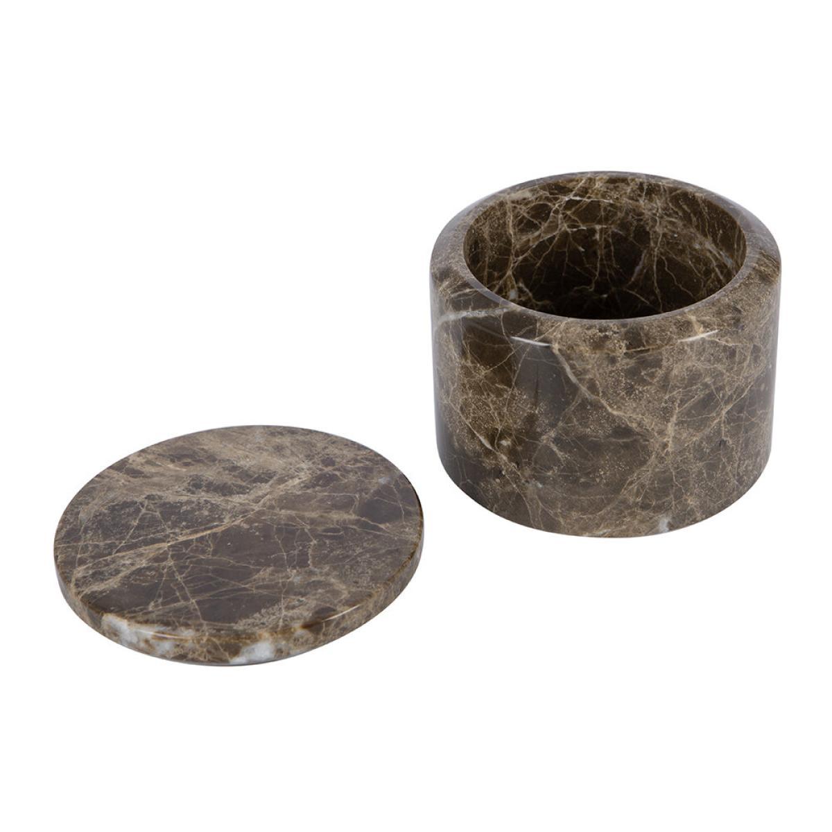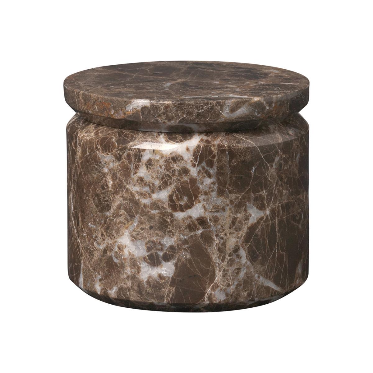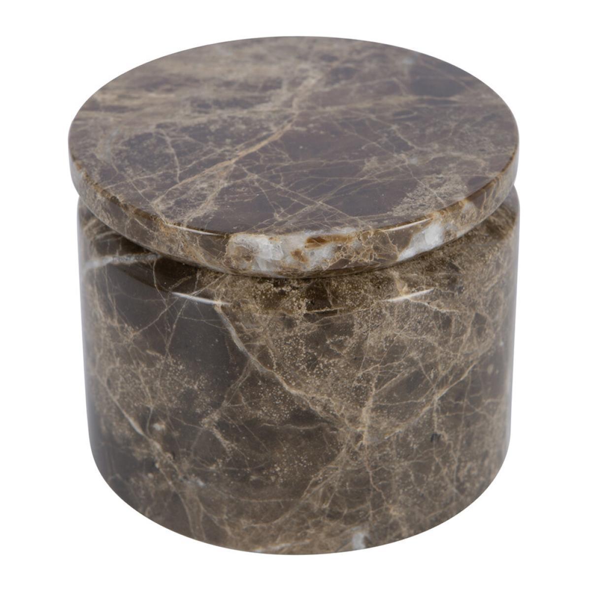 Store your favourite trinkets in style with this storage box from Blomus. Ideal for keeping small accessories safe, each storage box is individually crafted from marble so no two are the same. The perfect finishing touch for your interior. Key features: * Material: marble * Dimensions: Ø9x7.5cm * Brown colour * Marble pattern * Please note, due to natural materials used slight variations can occur