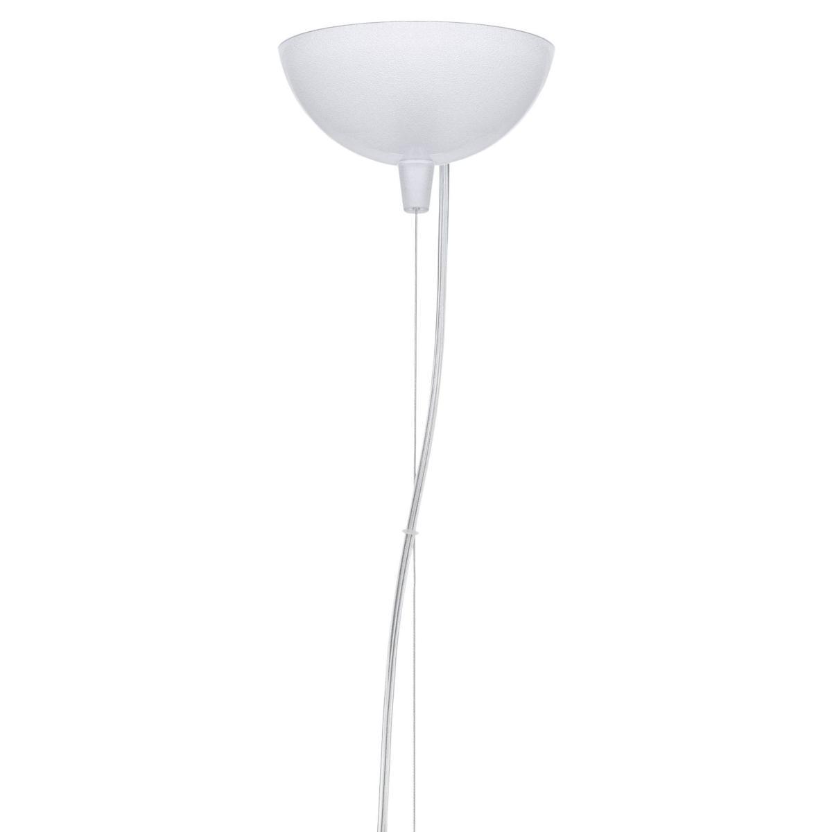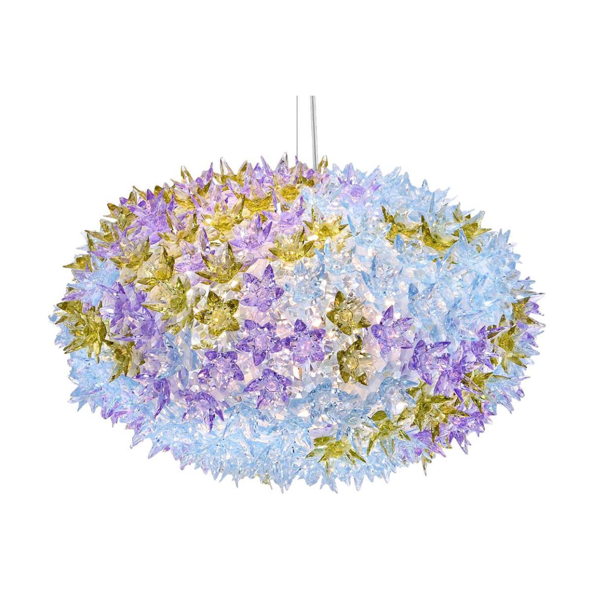 A lamp as precious as Murano glass, as irreverent as a rock opera - Bloom literally blooms in a scintillating and lavish cascade of crystal. Bloom is composed of a tubular polycarbonate framework entirely overlaid with a structure of tiny polycarbonate double corolla flowers. The result is a lamp produced industrially but with all the forms and complexities of a unique handcrafted piece. A series of tiny lights located within the skeletal structure beams light shafts through the petals to refract on the faceted surfaces of the petals and multiply a thousand reflections. Bloom is a new way of interpreting a traditional lamp with that added special touch. A work of art that can furnish and fill a room all by itself, creating that sparkling atmosphere of splendour.