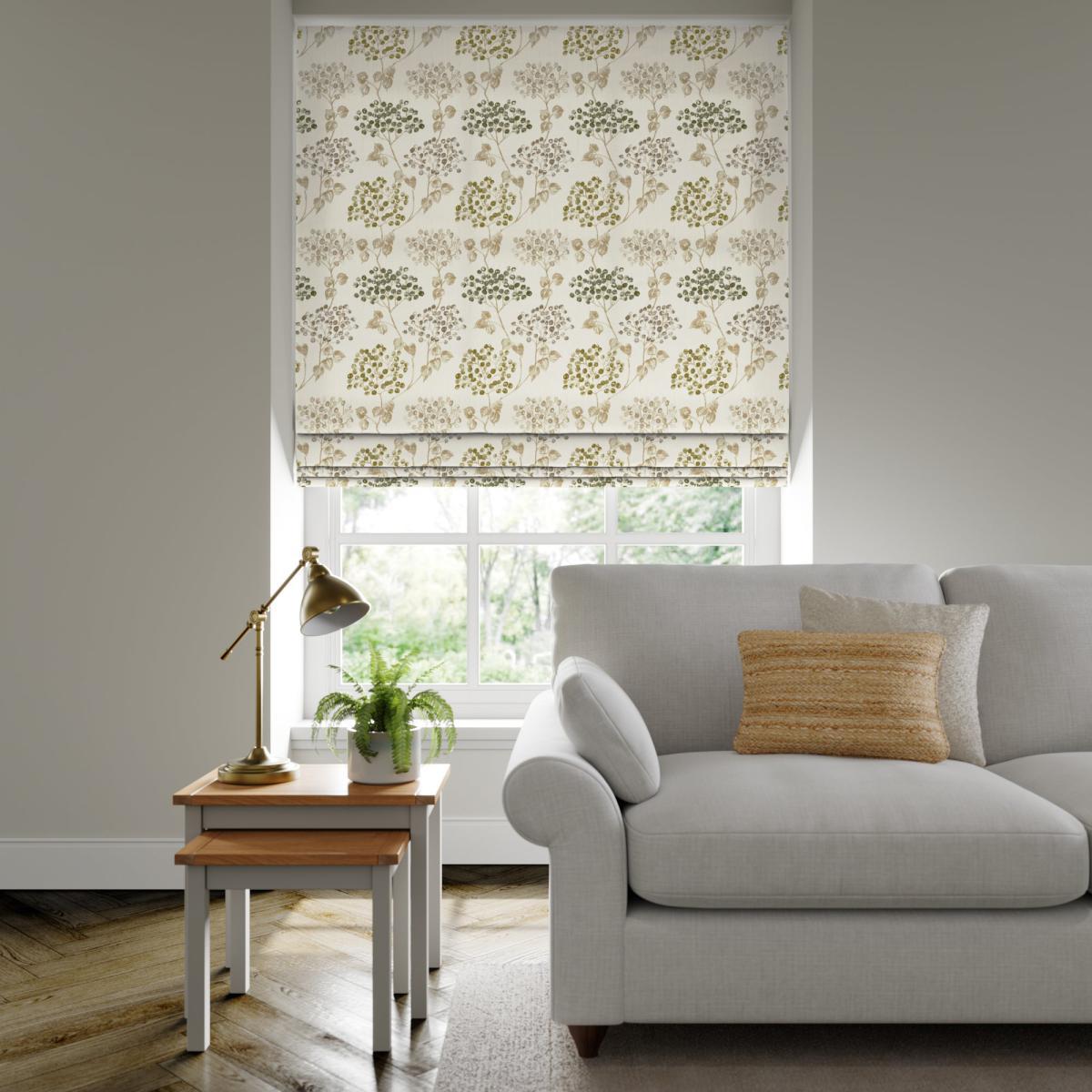 * Choose from 3 linings* Select your fitting type* Pick a side for the operating chain The Bloom range of Roma Blinds are beautifully elegant and offer a floral textured finish to help welcome a personal touch into your home.**Choosing your lining:*** Blackout provides minimal light disturbance in your home making it perfect for bedrooms. * Thermal helps to keep the warmth in and the cool air out meaning it’s great for family rooms or lounges. * Our Standard Lining is perfect if you like the glow of natural light whilst your curtains are closed whilst still maintaining your privacy.**Choosing your fitting type:*** Inside the recess: this gives a tidy, snug finish as it’s made to fit your window exactly. * Outside the recess: this option is great if you don’t want the blind to be visible from the outside when it’s drawn up.**Choosing which side you’d like the operating chain:*** Think about where your blind will be situated and what furniture may be near it – choose the side that is easier for you to access.**Need help deciding or measuring?**Book a free appointment with one of our consultants! dunelm. com/category/made-to-measure/book-an-appointment).**Child Safety:**We add clips to the back of our roman blinds to attach the cords to the fabric. They also double up as a child safety feature. If pressure is exerted the clips will detach to prevent the risk of strangulation. Please read our [Blinds Safety Guide](https://www. dunelm. com/info/buying-guides/blinds-safety-guidance) for more information. If the clips detach accidentally during normal use, they can be easily re-clipped back into place. Please note: If your measured width is over 130cm your blinds may come with a fabric join to provide the full width required.