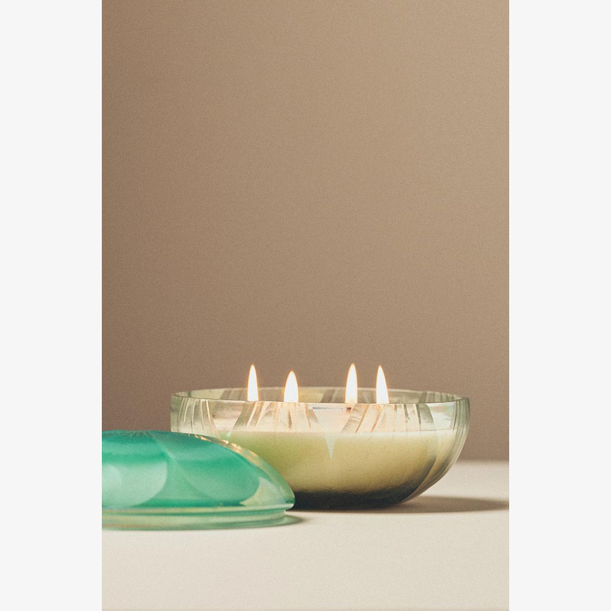 Soft, curving lines and an iridescent burst of color characterise the Blooming Candle, housed in a hand-etched rounded vessel. Night Gardenia (Floral Fruity):A delicate breeze of fragrant gardenia, salted guava, and soft tonka nestled within an unexpected warm musk base. For the best burn experience, keep the following in mind: The first time you light your candle, allow it to burn until the wax pool melts all the way to the edge; for a larger candle, this may take several hours. Wax has " memory," so if it is extinguished with a partial pool, that will prevent a full, even pool from forming in the future. Trim your wick each time you light the candle, removing any " bloom" from the previous burn. We recommend lighting a wick that is 1/4-1/2" in length. Ensure that your candle is placed on a heat-safe surface. Do not allow wick trimmings, dust, or other materials to accumulate in the wax pool. To ensure safety and longevity, be sure to check the bottom of your candle for additional instructions, including details on when to discontinue use. Blooming Floral Night Gardenia Glass Candle by Anthropologie in Blue Size: Medium, Cotton