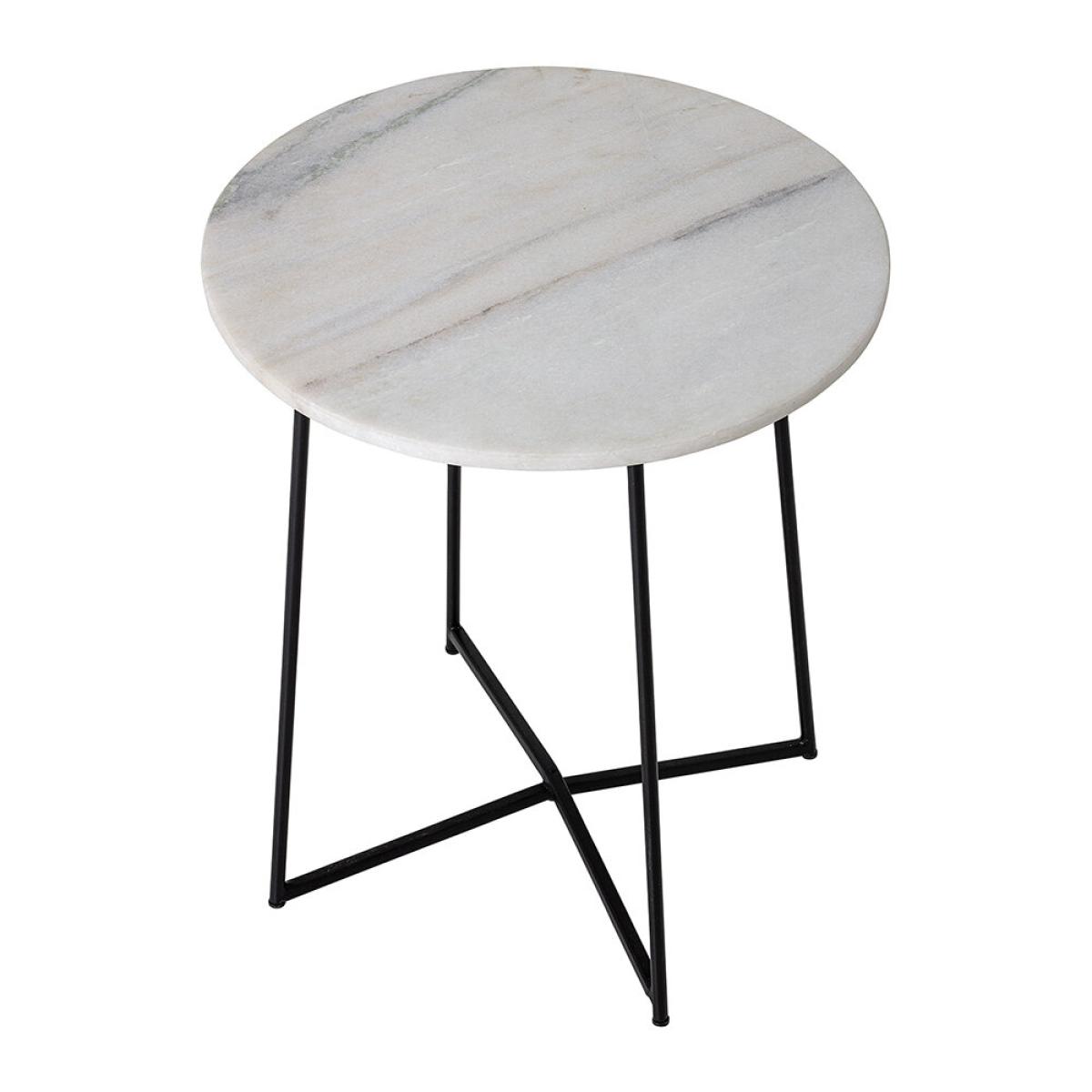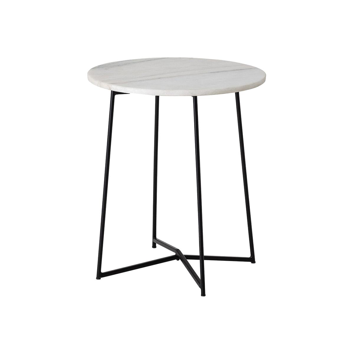 I love this side table for its sleek marble top combined with minimalist black metal legs, giving it a modern yet versatile appeal. It works particularly well in contemporary or Scandinavian interiors where clean lines and neutral tones are key. The white marble surface adds a touch of sophistication, making it ideal for displaying a small lamp, a plant, or favourite books. Practical styling tips include placing it beside a sofa or armchair to serve as a handy surface, or grouping several for a layered look in a corner. Keep accessories simple to maintain its elegance, and it can also act as a subtle statement piece in more neutral colour schemes.
