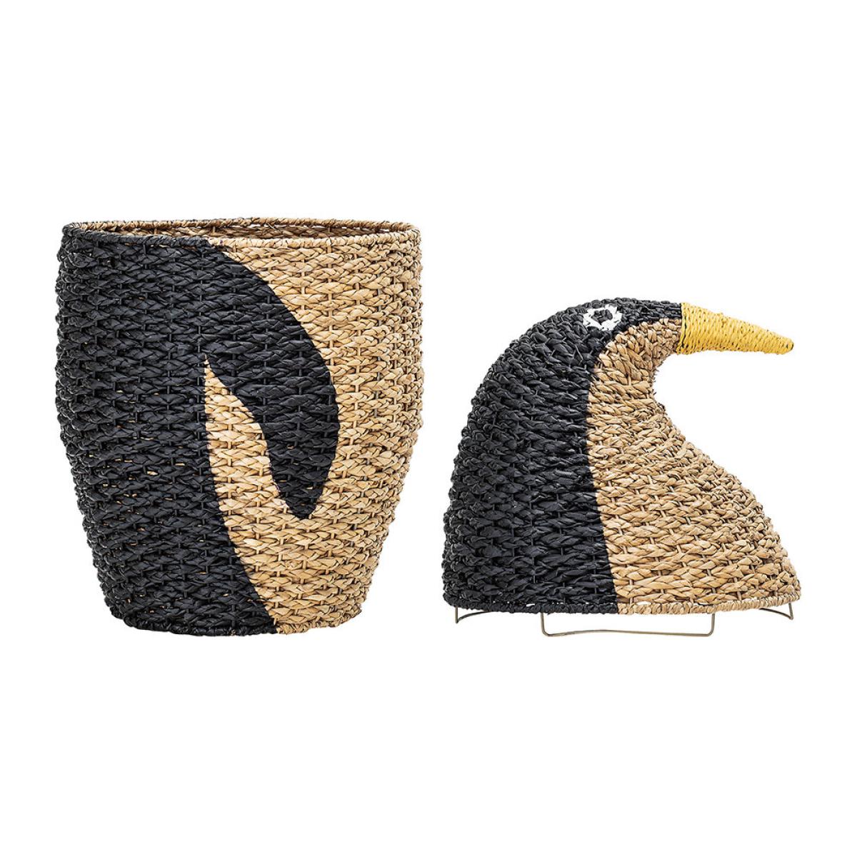 Bloomingville - Bankuan Penguin Basket with Lid - Black/Natural