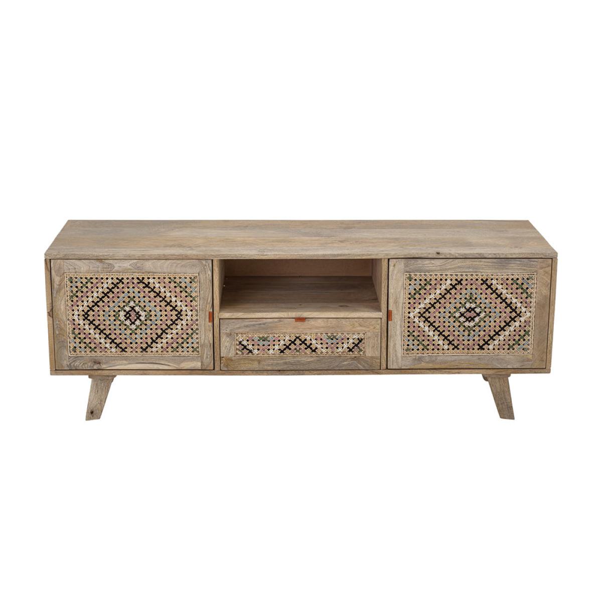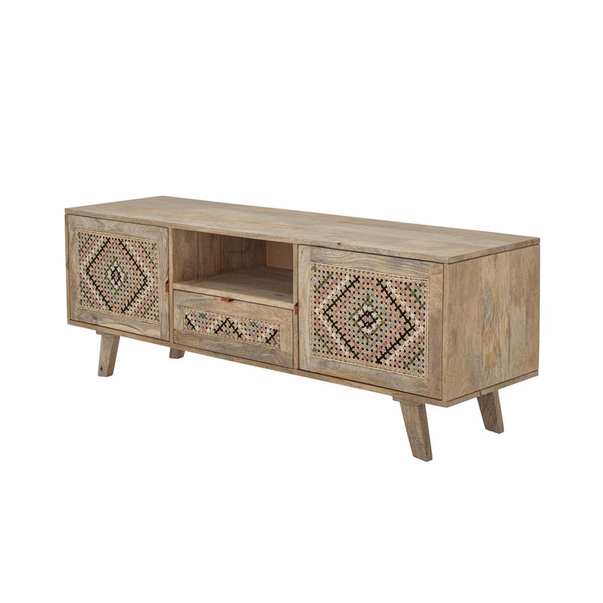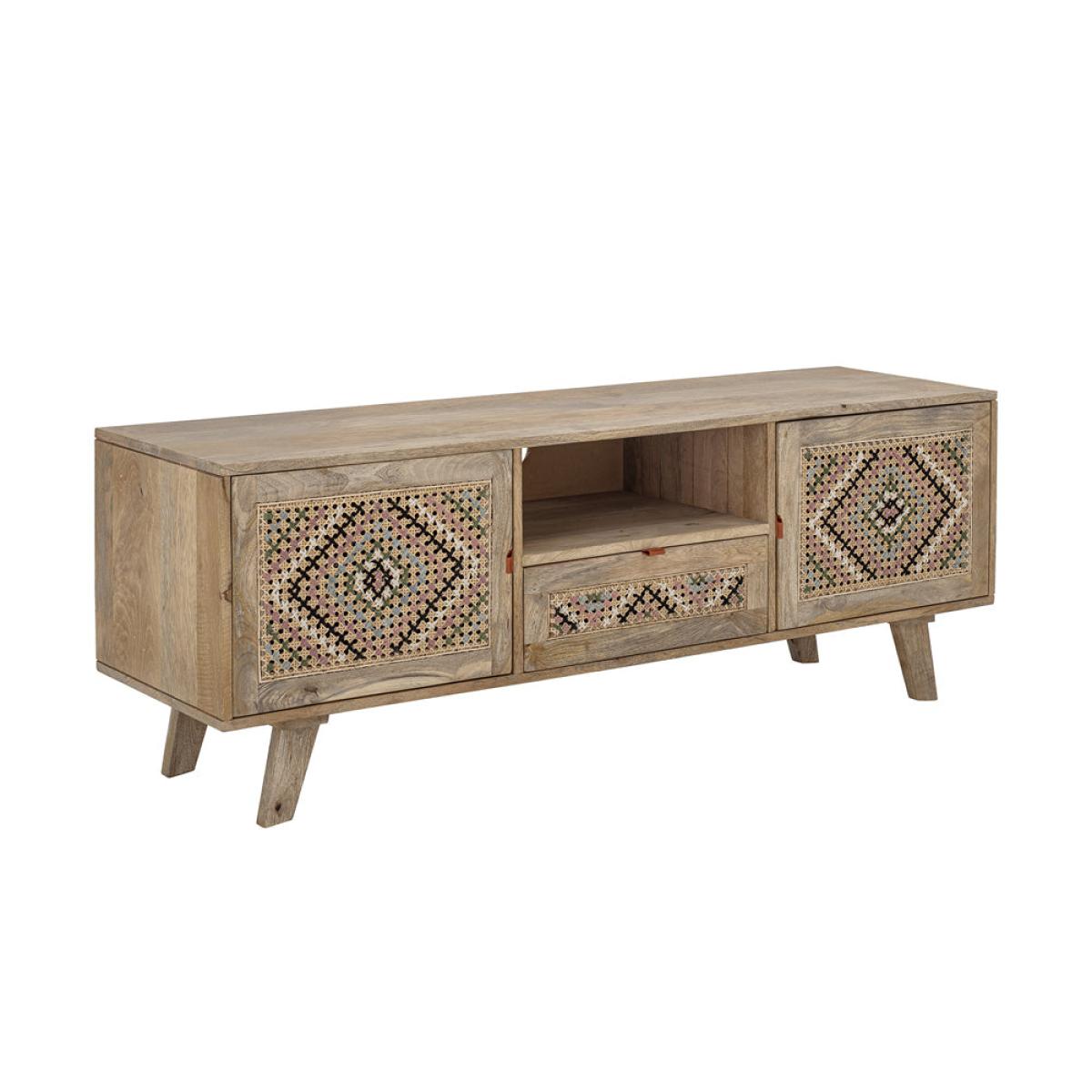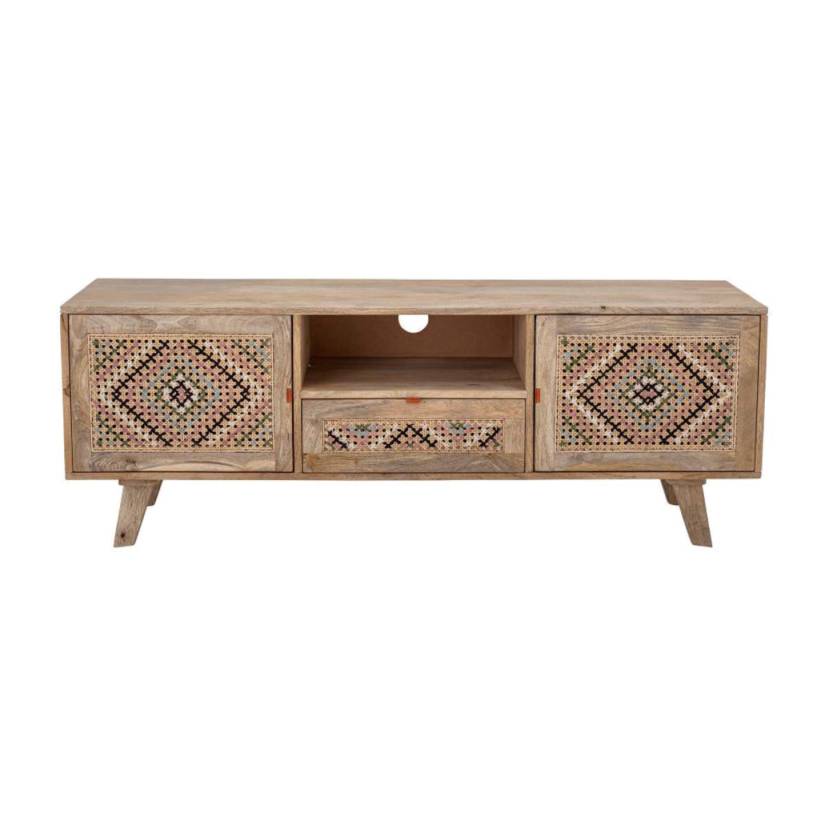 The Celest Cabinet by Creative Collection is a cool cabinet that will not only give you extra storage space but will also decorate any room it is placed in. It is made of mango wood, has cane doors with woven pattern in pastel colors and leather handles. Can also be used as a tv furniture. Dimensions: H: 50 x W: 40 x D: 140 cm Materials: Mango Wood Assembly Required: Y Care Instructions:Wipe clean with a damp cloth. No harsh abrasives or cleaners.