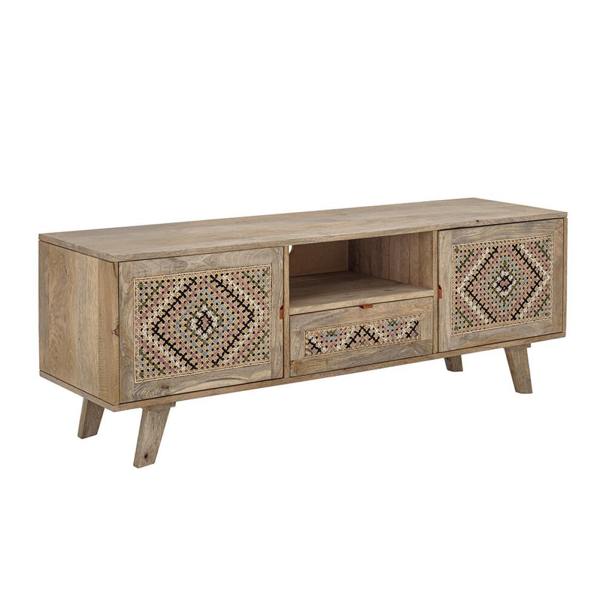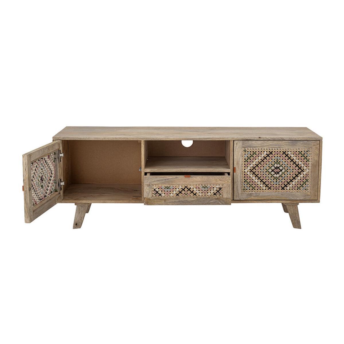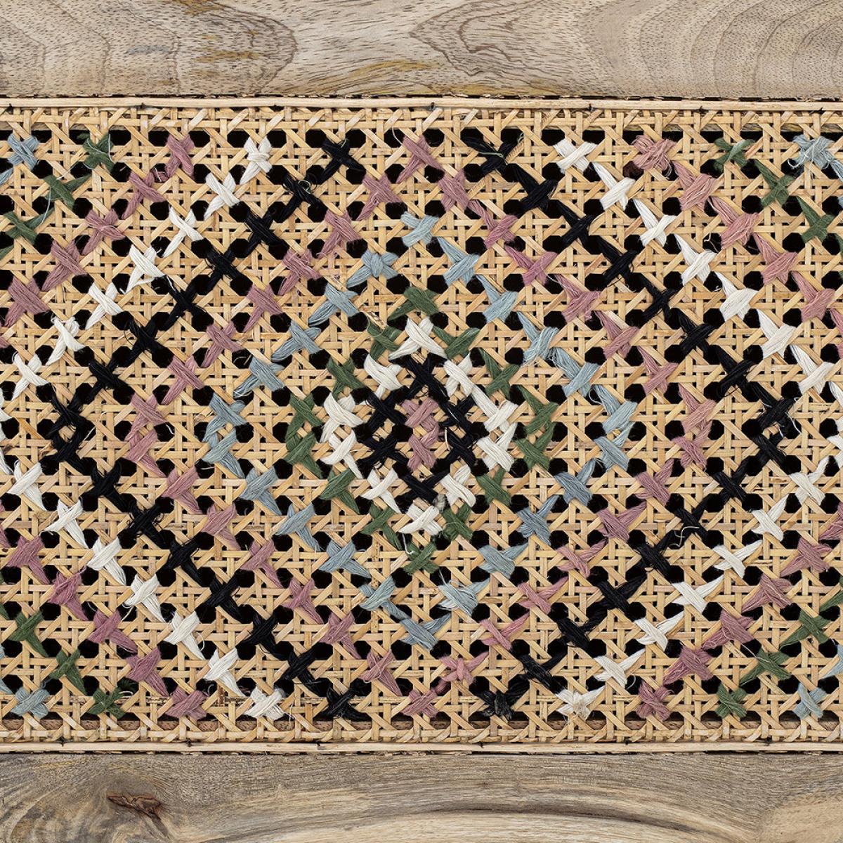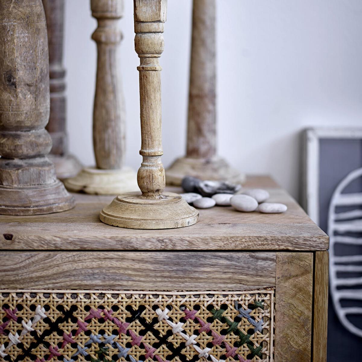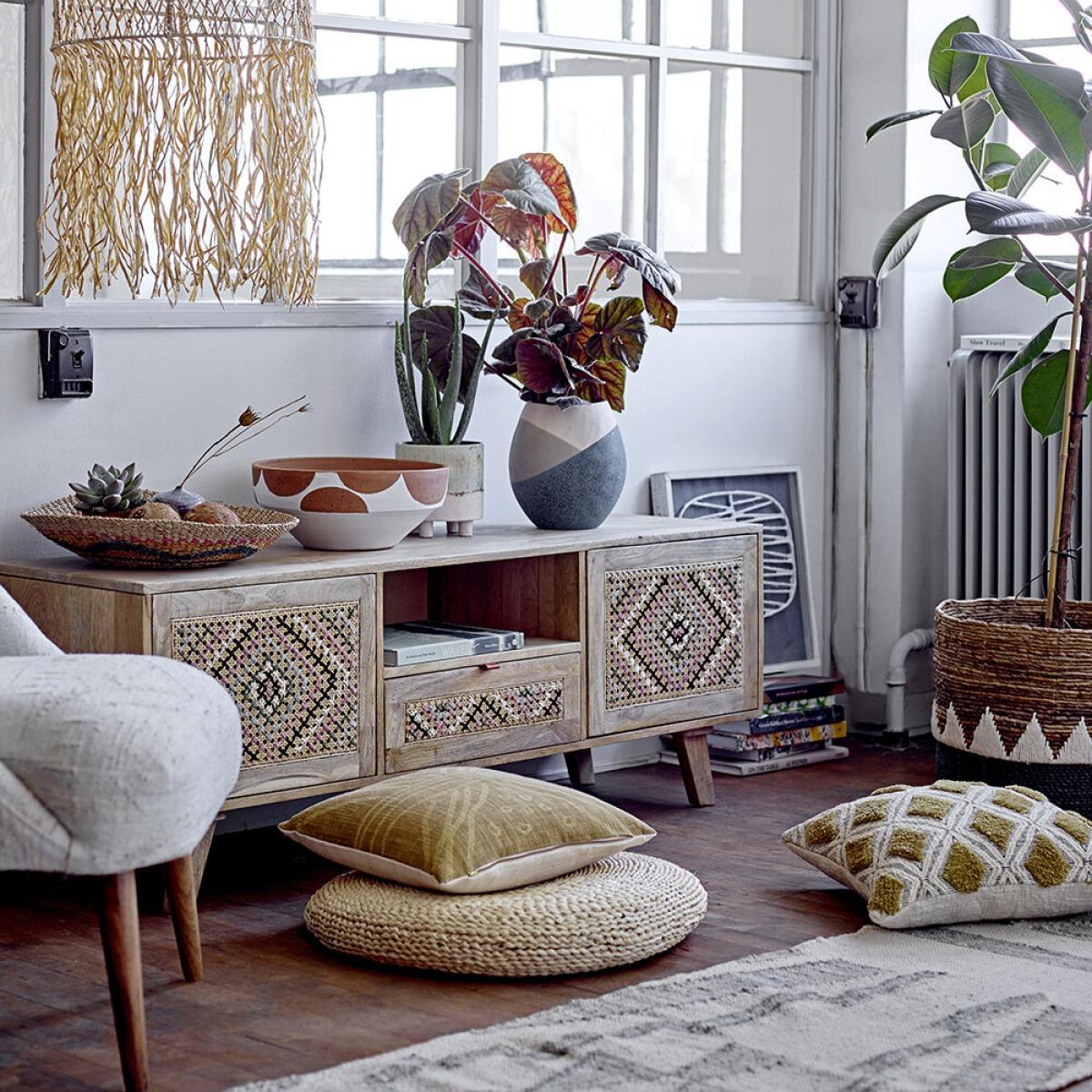 Give your home a bohemian touch with this Celest cabinet from Bloomingville. Made from mango wood and cane, this decorative piece features leather handles and a beautifully woven pattern in pastel colours.