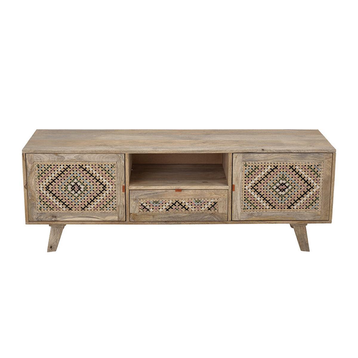I love this piece because its natural wood finish and clean lines give it a versatile, understated appeal that works well in both contemporary and rustic interiors. It’s an excellent choice for adding warmth and character to living rooms or bedrooms, especially when paired with greenery or eclectic accessories. Styling tips include using its surface for display rather than clutter, keeping decorative items like vases or bowls minimal to highlight its craftsmanship. Its open compartments lend themselves well to easy organisation, making it practical without sacrificing style. Whether as a media unit or a statement storage piece, this cabinet fits seamlessly into laid-back, homely schemes or more polished interiors, adding a touch of natural charm.