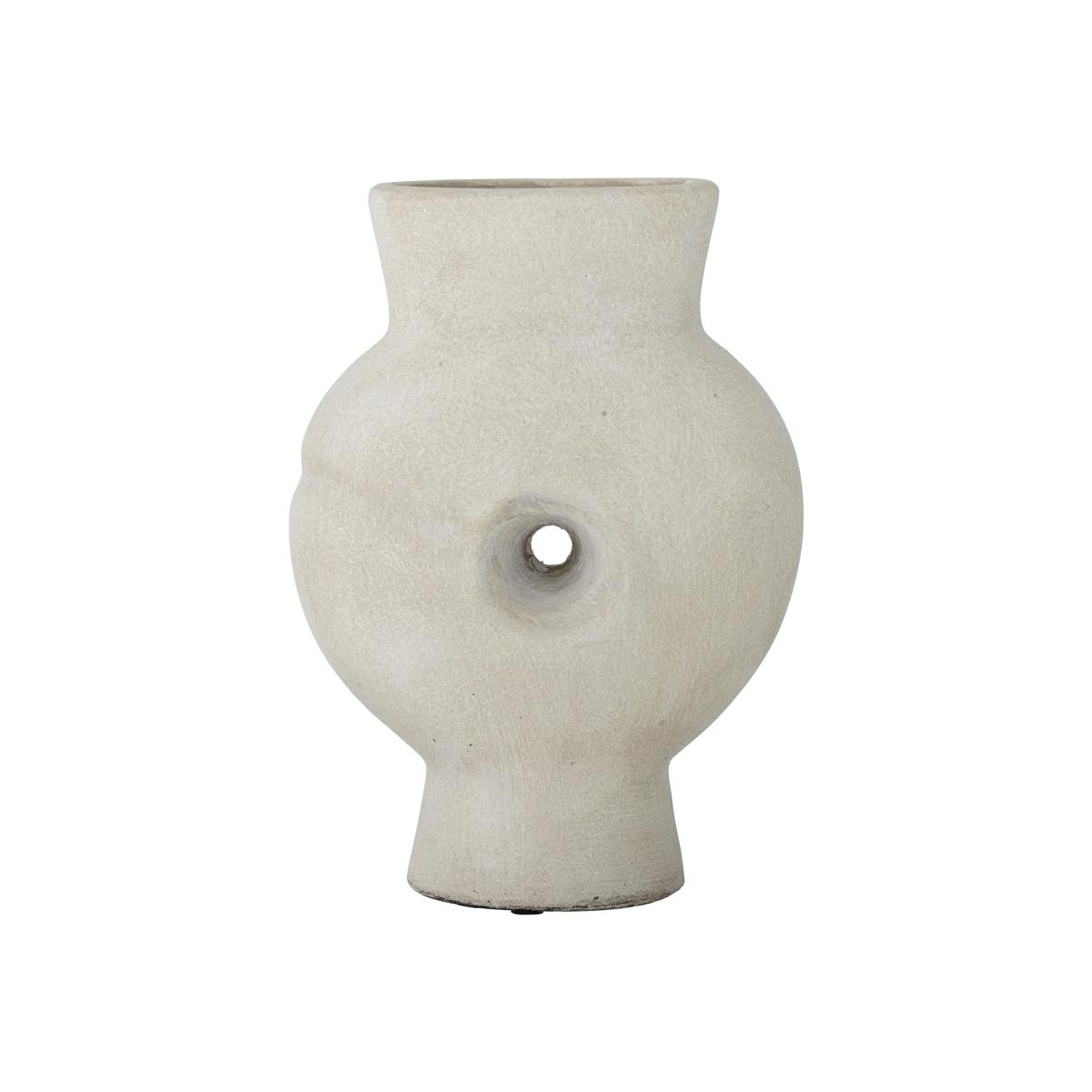 A standout feature is its practicality. While being a stylish statement, the Chania Deco Vase is tailored for dried flowers, offering a unique display that complements your space. Its intentional non-waterproof design lends authenticity to its charm, creating a rustic aesthetic that celebrates the passage of time. The Chania Deco Vase by Bloomingvile has a unique design with a hole in the middle that breaks up the shape and gives it a light touch. The vase is made of terracotta and will fit perfectly in any room. Perfect for dried flowers as it is not 100% waterproof. Size H22, W16.5,. Diameter 9cm.