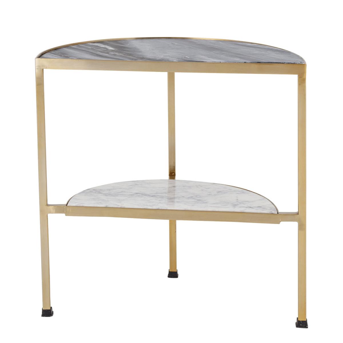 The Clint Sidetable by Bloomingville is an attractive table made of black marble and matt brass iron. The sidetable has a lower shelf and in addition to looking perfect next to your sofa, it is ver. View More. The Clint Sidetable by Bloomingville is an attractive table made of black marble and matt brass iron. The sidetable has a lower shelf and in addition to looking perfect next to your sofa, it is very practical. The combination of the beautiful marble and the raw iron make this sidetable something very special.