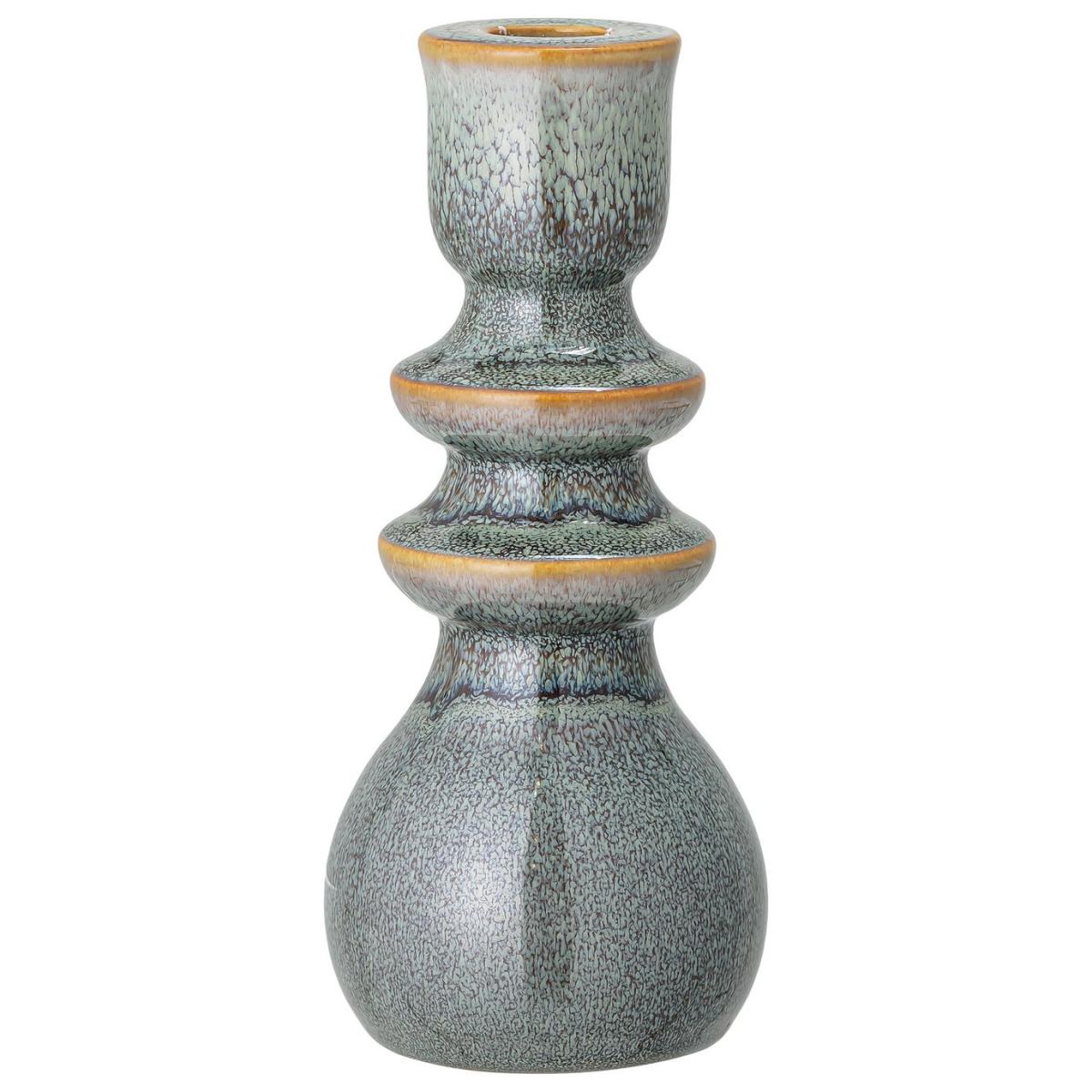 Discover the Emie candlestick in grey stoneware—an exquisite masterpiece emanating elegance. Meticulously crafted, its green hue effortlessly complements styles. Whether on a dining table or shelf, it casts a soothing glow, cocooning your space. Handcrafted with care, each piece boasts unique variations due to reactive glaze, a one-of-a-kind marvel. Embrace the fusion of artistic craftsmanship and allure with Emie Candlestick. Illuminate with captivating charm today. Size H19,. Diameter 8cm.