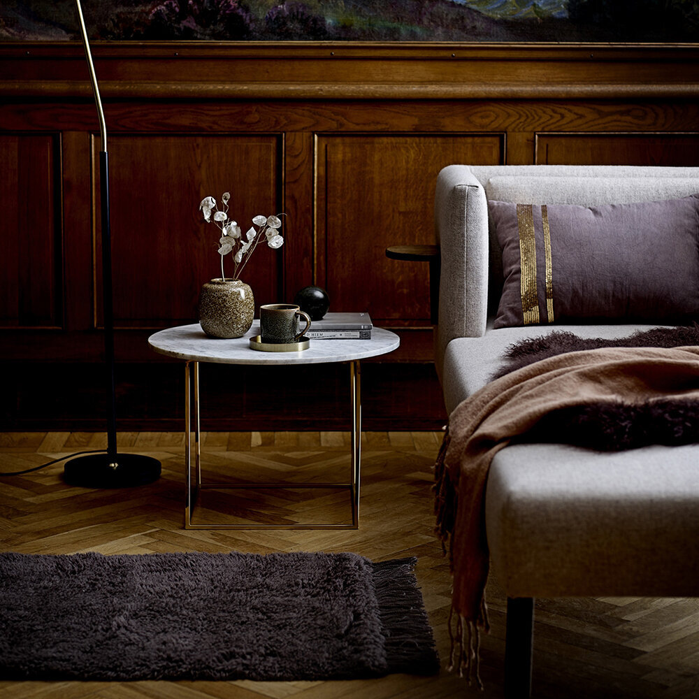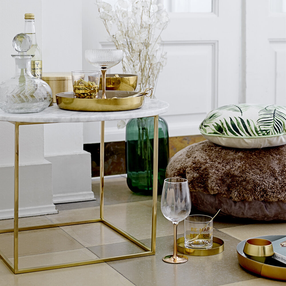 Complete your living room with this Eva coffee table from Bloomingville. With steel legs in a shining golden colour, it features a unique marble tabletop.