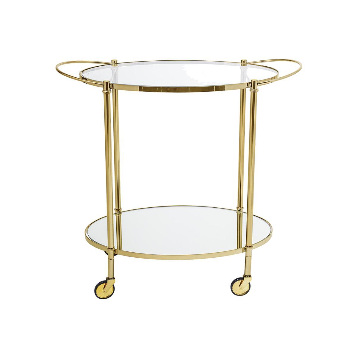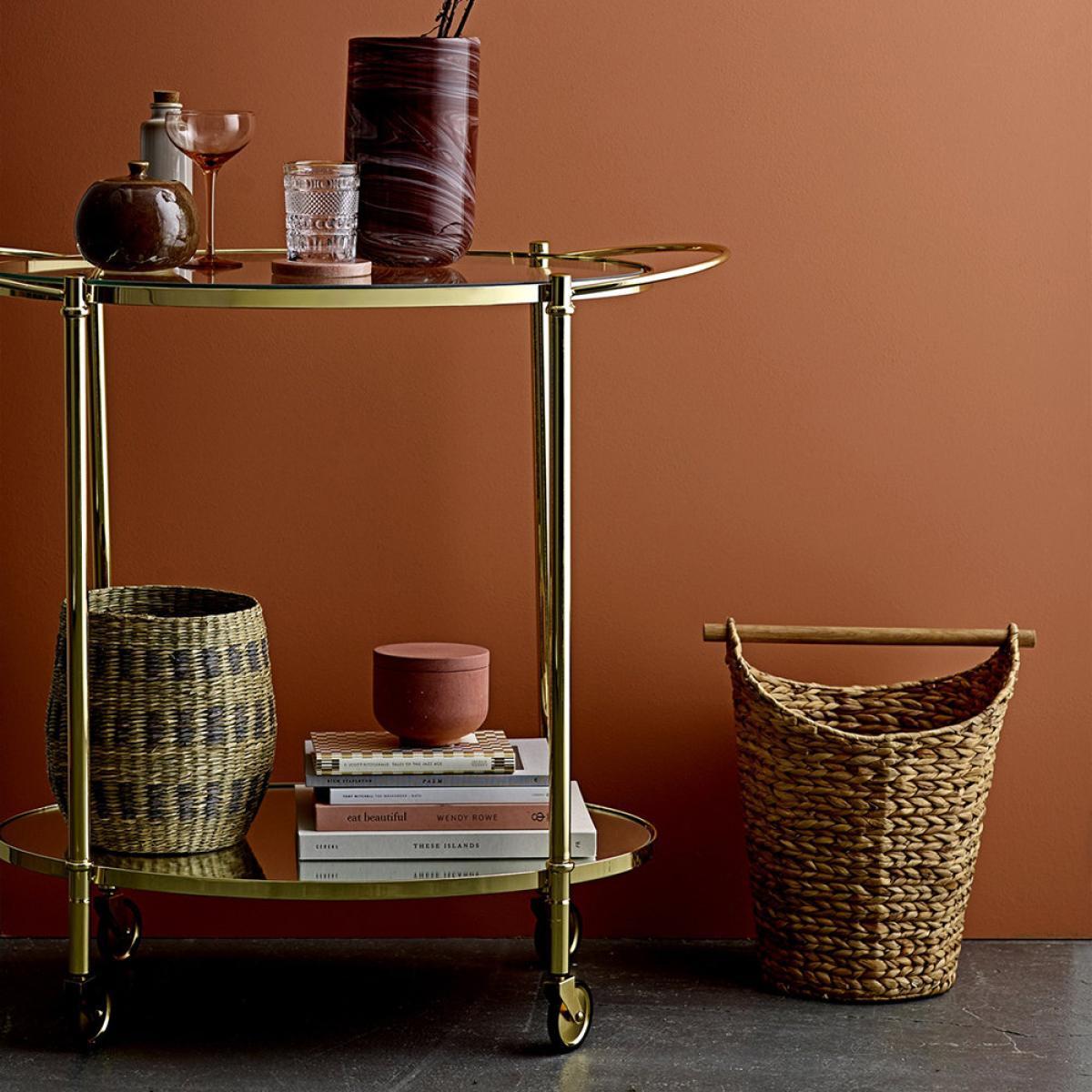 Add glamour to your entertaining style with this Fine bar side table from Bloomingville. With two tempered glass shelves and wheels, this side table doubles up as a drinks trolley to whizz round a party. With a sleek gold coloured frame it oozes old-world glamour.