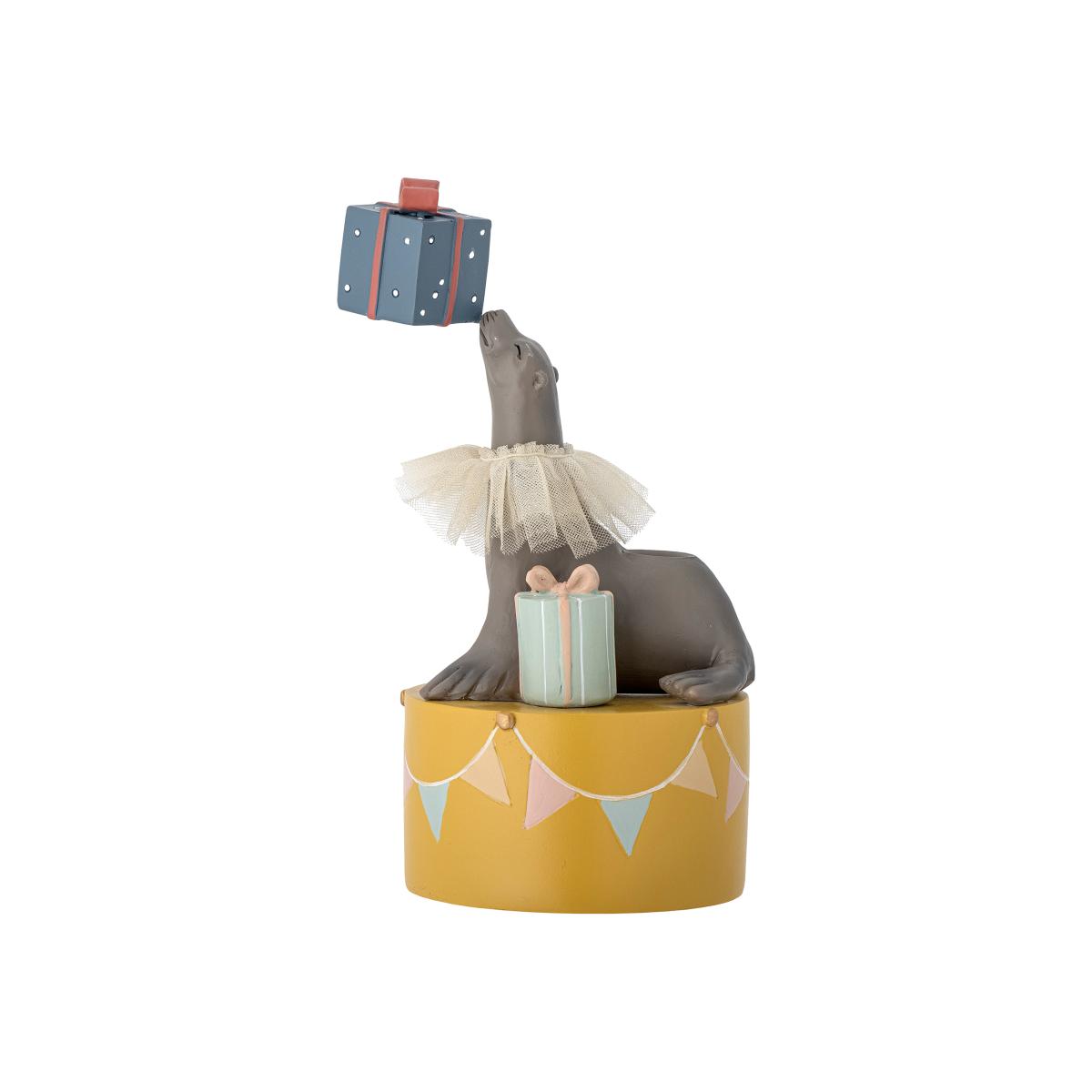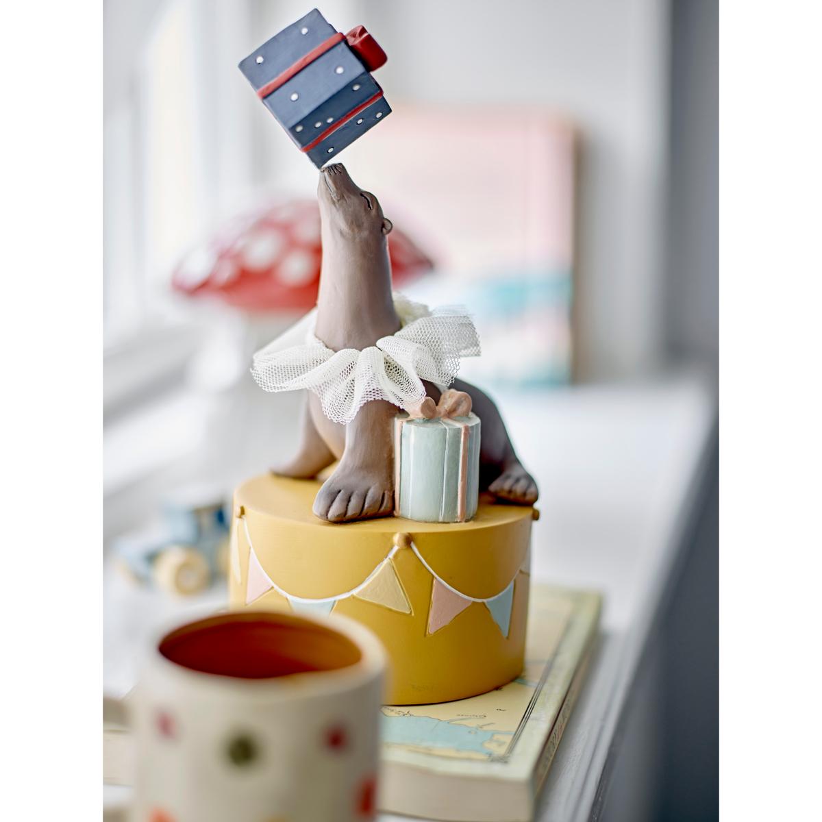 I love this playful candle holder because of its quirky design and bold colour palette, which adds a fun element to both modern and eclectic interiors. The sealion figure with a tutu brings character and charm, making it perfect for children's rooms, dessert tables, or adding a whimsical touch to a bookshelf or side table. To style it effectively, place it alongside other colourful accessories or natural textures to highlight its personality, and consider pairing it with candles in soft pastels or contrasting hues to enhance its visual appeal. Its 19cm height makes it a versatile piece that can fit comfortably on most surfaces without overpowering the space.