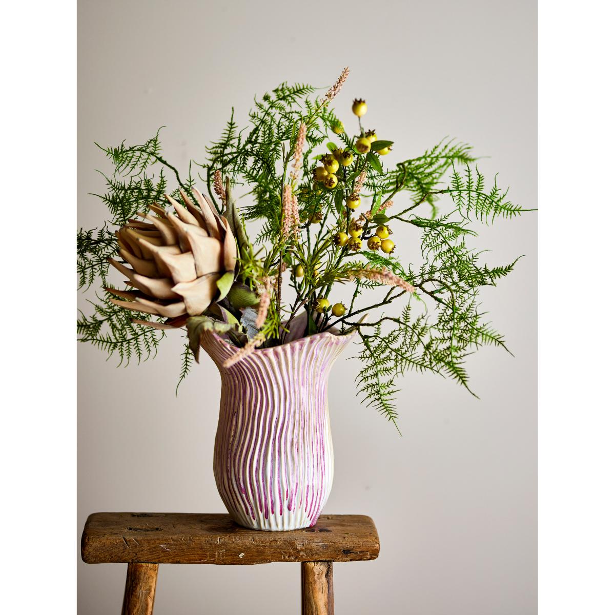 This pink floral vase makes a lovely statement piece that adds colour and texture to a space. I love how its soft hue can brighten up neutral interiors or complement pastel palettes, making it quite versatile. It works well in both contemporary and eclectic interiors-think placing it on a mantle, side table, or as a centrepiece in a dining setting. For styling tips, pair it with fresh or dried blooms that echo the pink tones, or leave it on its own to showcase its unique shape and glaze. Its size makes it perfect for paired arrangements or standalone displays, and it’s a great way to introduce a touch of colour without overwhelming your decor.