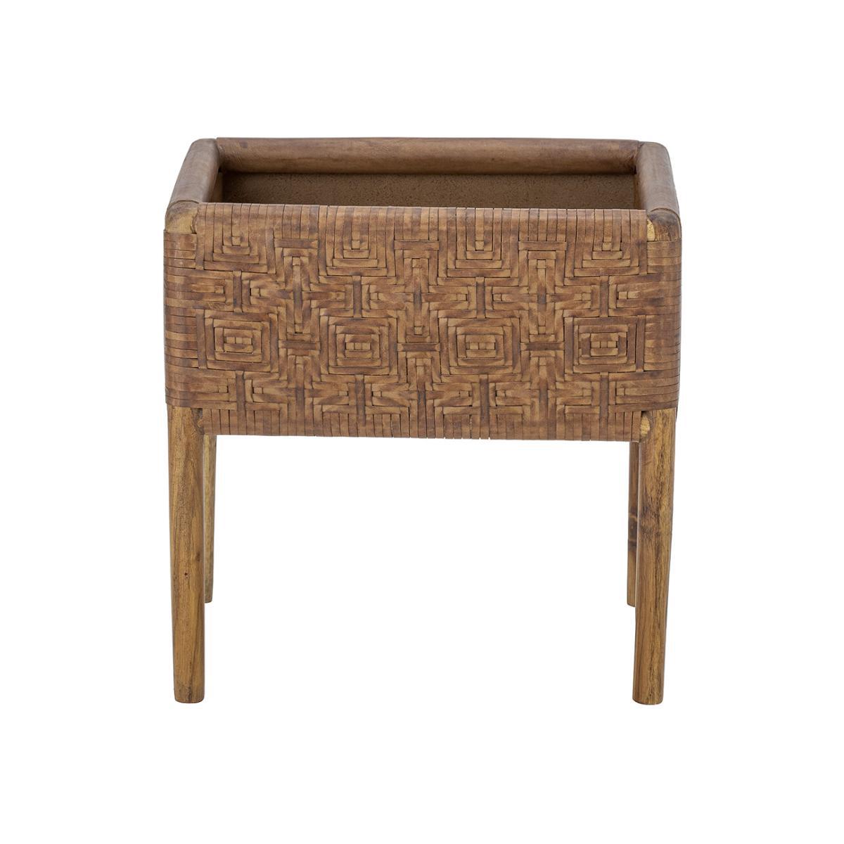 Display your plants in style with this Florry planter from Bloomingville. Made from mango wood and brown leather, this elevated design features a beautiful, braided pattern for a bohemian feel.