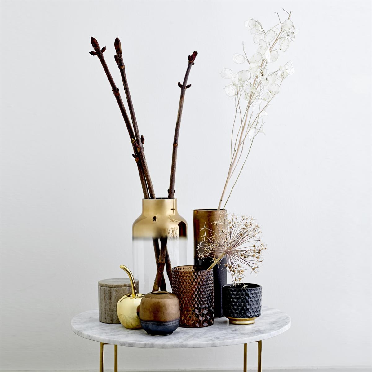 This handmade flower pot by Bloomingville is made of glazed stoneware with a unique pattern and a gold-coloured base. The flower pot is a stunning decorative detail both with and without plants.