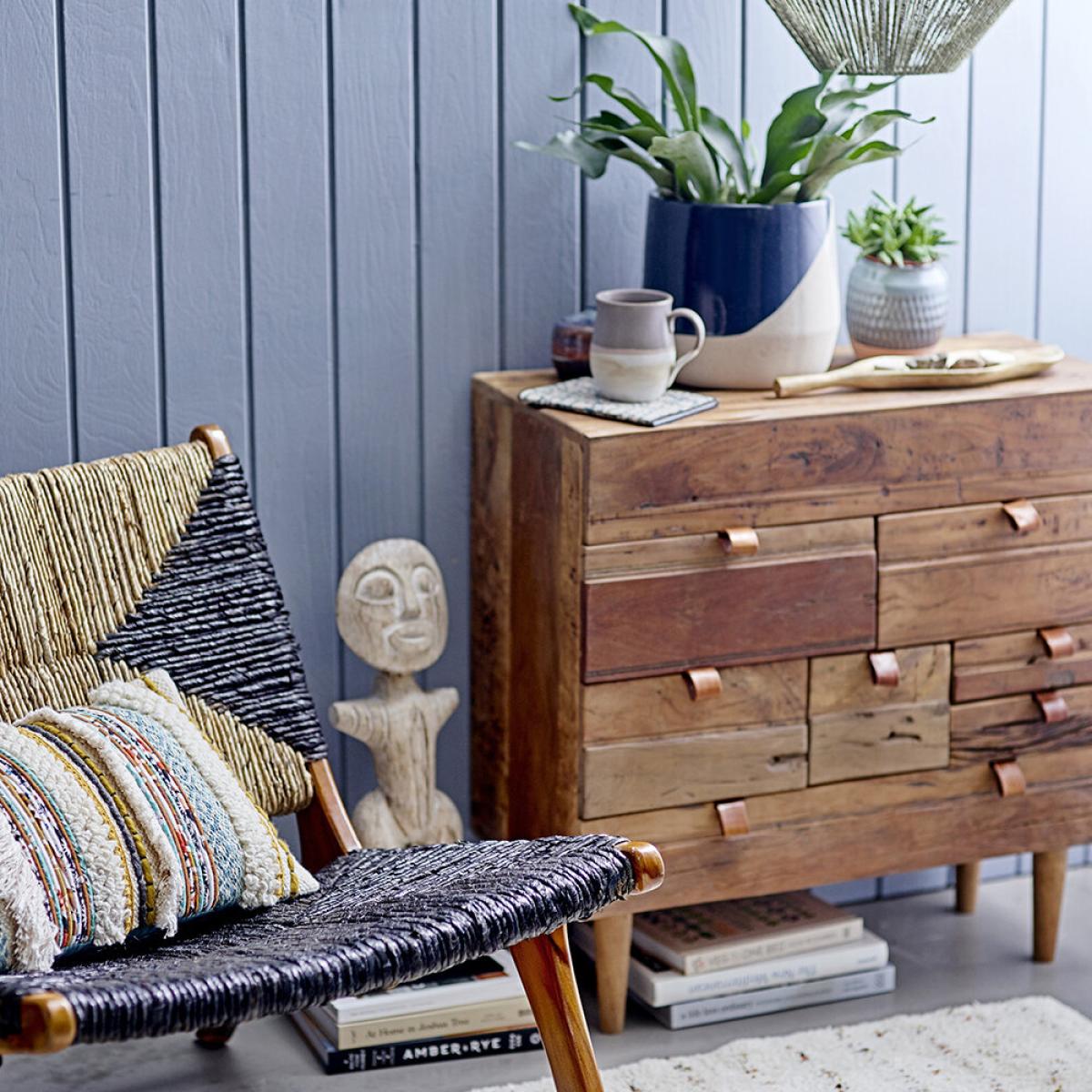 Lacking storage? This Harley chest of drawers from Bloomingville is perfect. Made from reclaimed wood with leather straps, this beautiful bohemian design will keep your bedroom or living space neat and tidy. Please note, due to the materials used natural variations are to be expected.