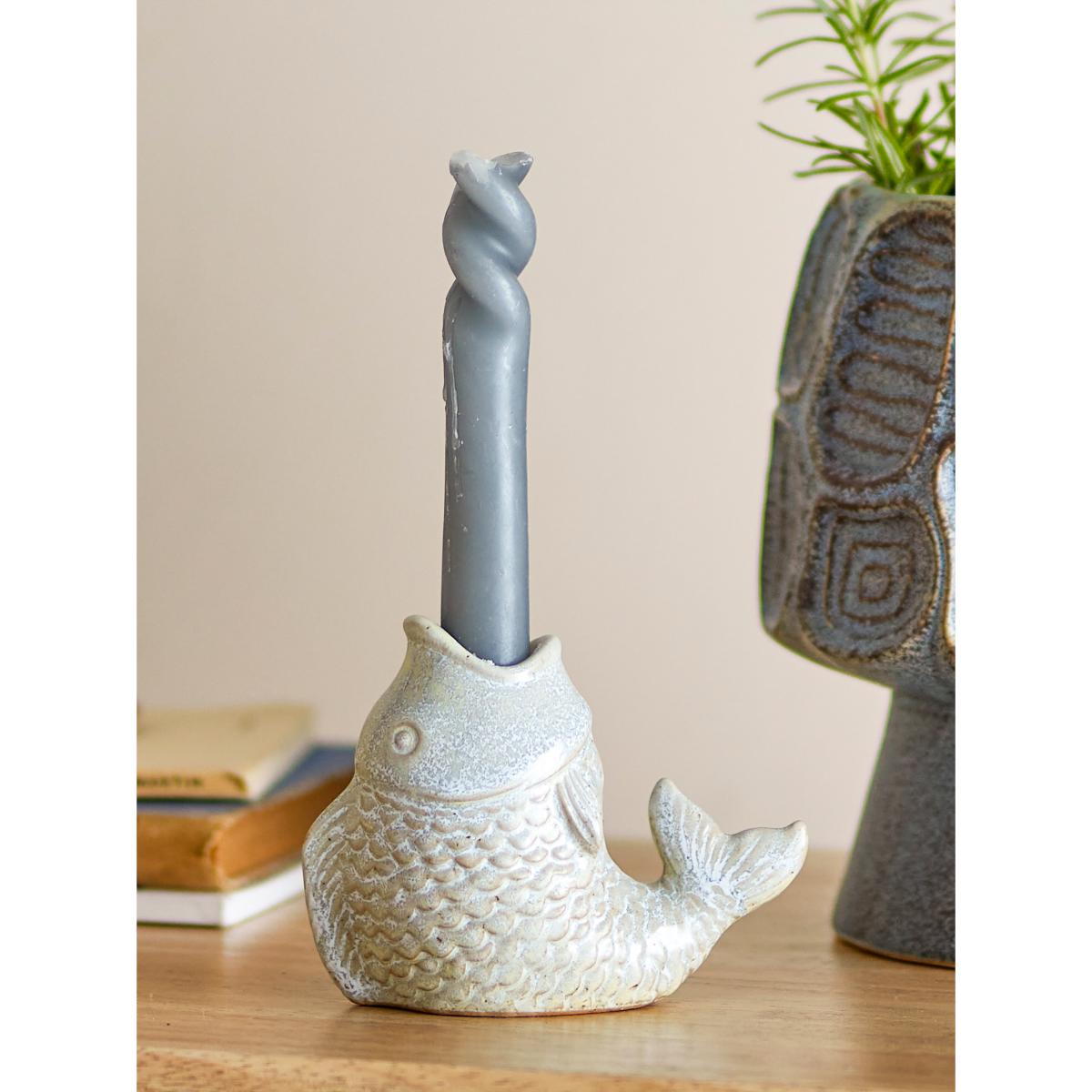 I love this fish-shaped candle holder for its quirky charm and understated finish. It works particularly well in relaxed, coastal-inspired interiors or layered with natural textures and softColour palettes. The grey hue adds versatility, making it suitable for both contemporary and vintage-style settings. Practical styling tips include pairing it with marble or wooden trays and placing a tall pillar candle inside for a cosy glow. It’s also perfect as a standalone piece on shelves or side tables, adding interest without overwhelming the space. Just ensure the candle height complements the holder to maintain its decorative appeal.