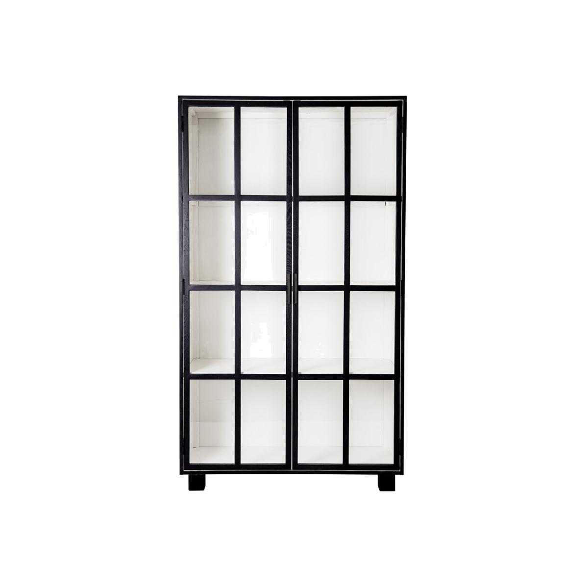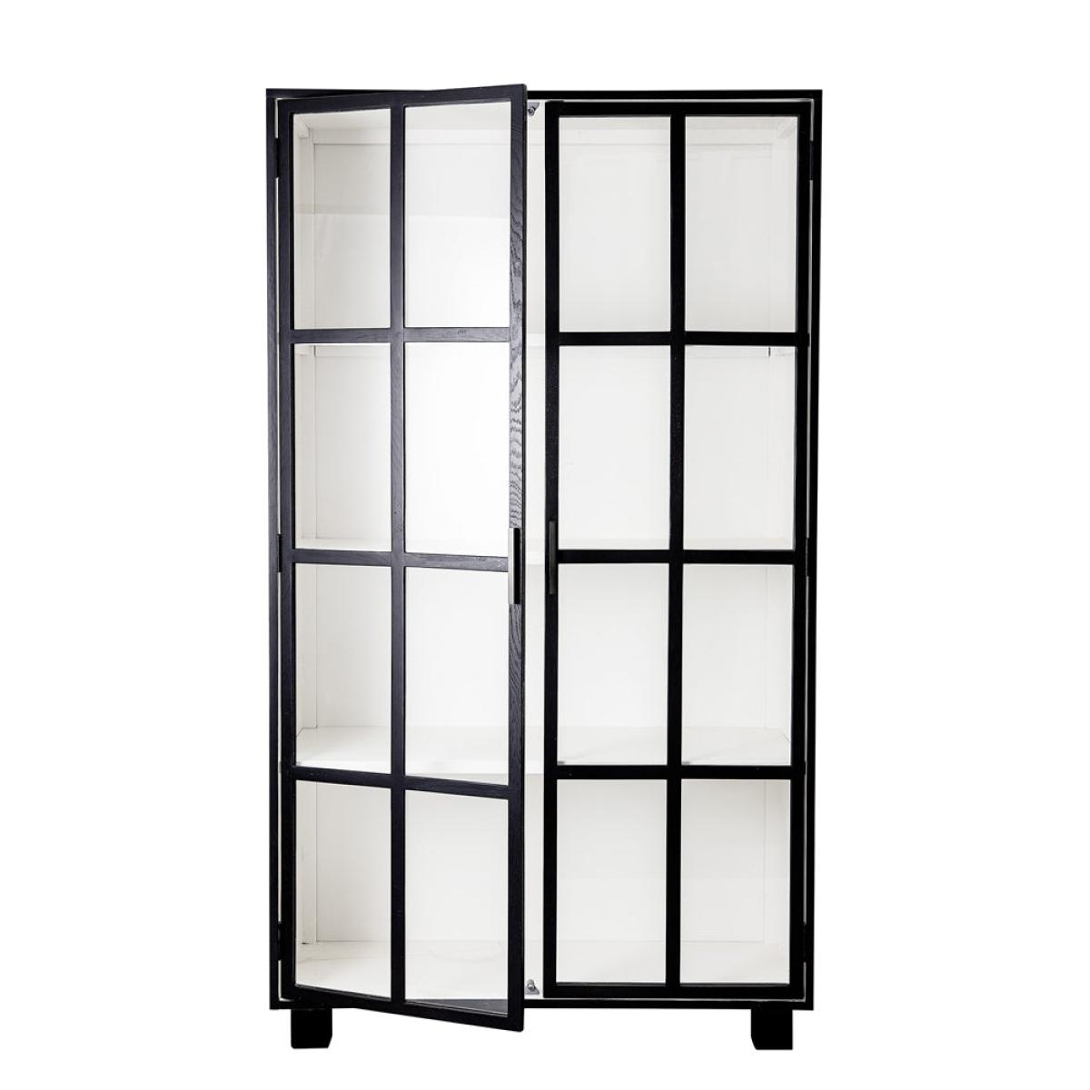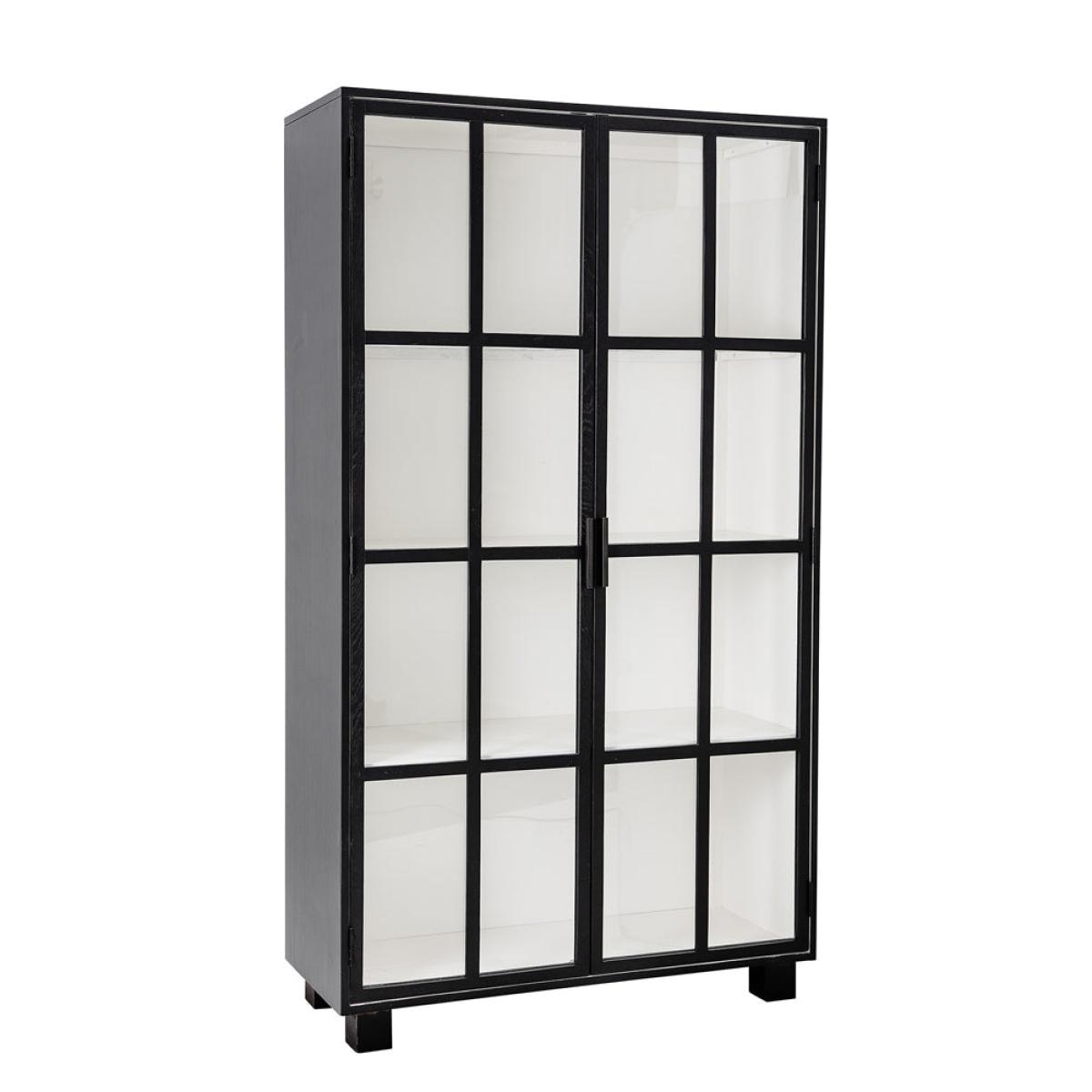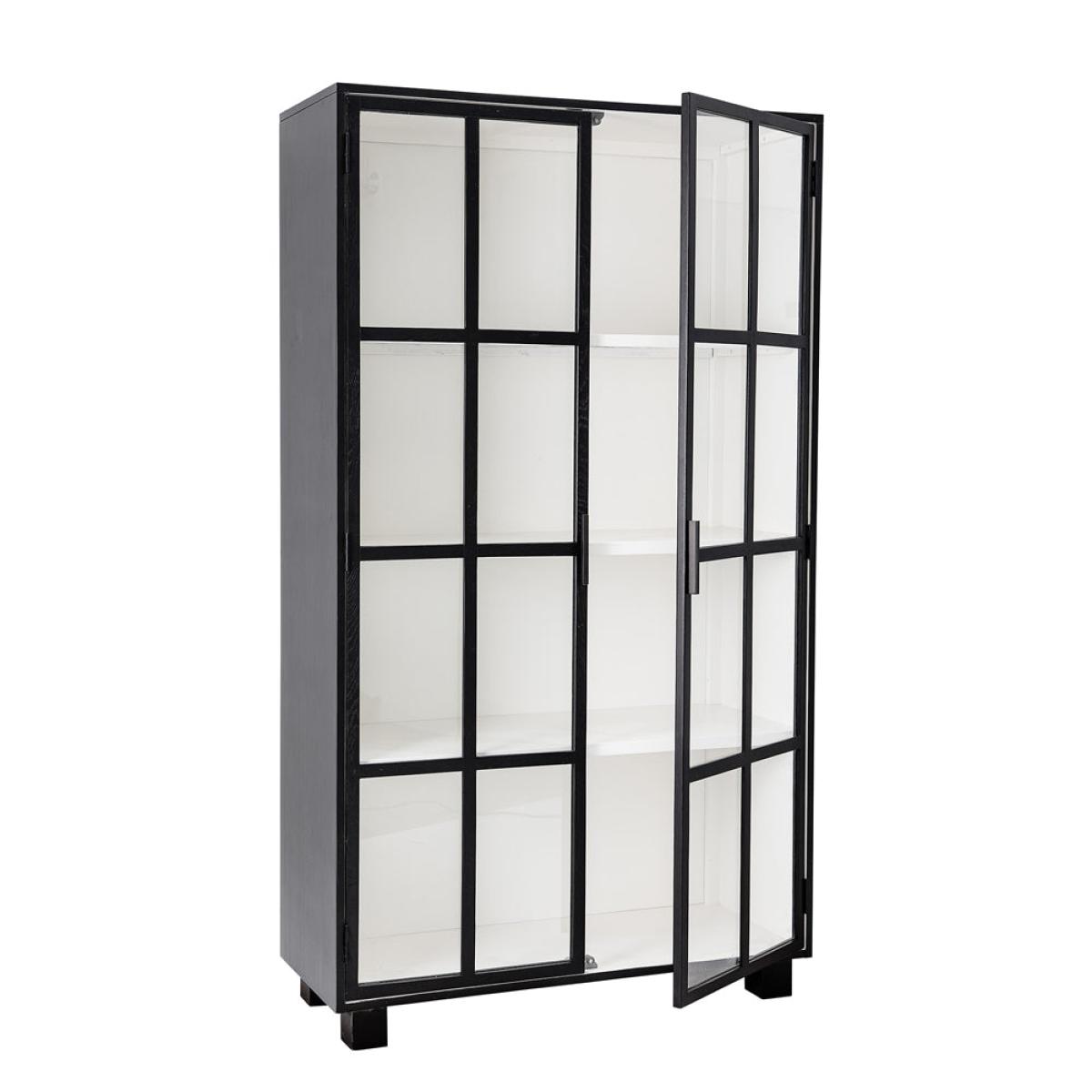 I love the look of this cabinet - its bold black frame combined with the glass panes gives it a modern, industrial feel that can add a striking focal point in many interiors. It works particularly well in minimalist, contemporary, or even eclectic spaces where you want to showcase decorative pieces or collections behind the glass. Styling tips include using it to display curated ceramics, books, or vintage finds, while keeping the overall look streamlined with complementary colours and textures. Practical for both living rooms and kitchens, this piece combines style with function, making it easy to create an organised yet visually appealing display.