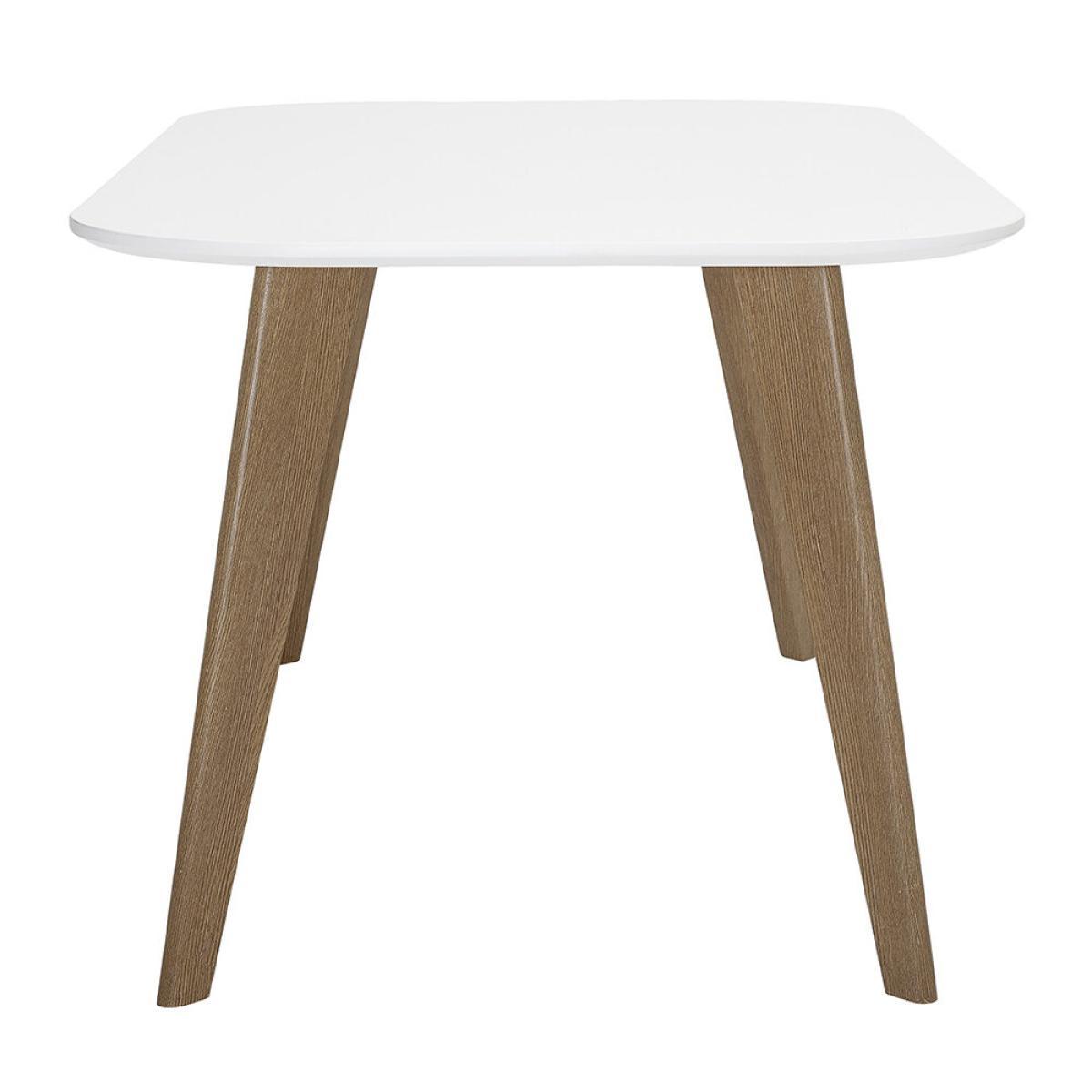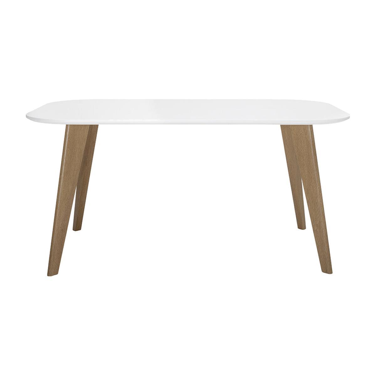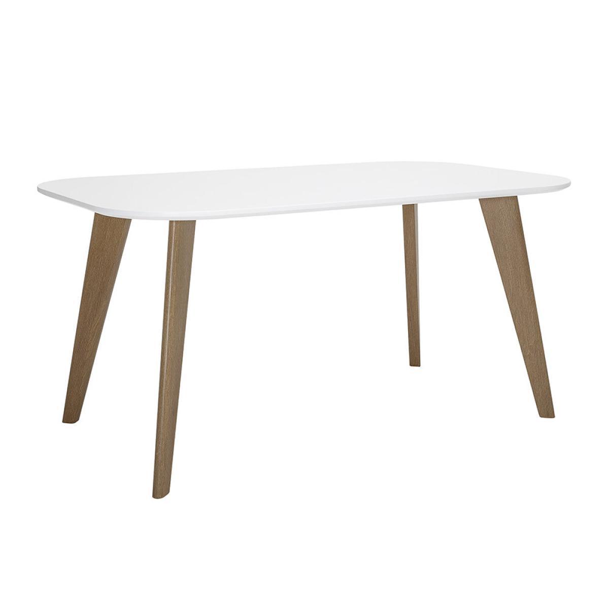 I love this table for its clean, Scandinavian-inspired design that effortlessly balances modern utilitarianism with warmth. The white top provides a versatile surface that works well with both neutral and colourful interiors, while the wooden legs introduce a natural element that keeps the look inviting. It’s particularly well-suited to contemporary, minimalist, or even Scandinavian schemes, but can easily be styled in eclectic or retro settings too. Practical tips include pairing it with upholstered chairs for a softer feel or mixing it with metal or wooden seating for a more streamlined look. Its simplicity also makes it easy to accessorise with a centrepiece or textiles that add personality without overwhelming the space.