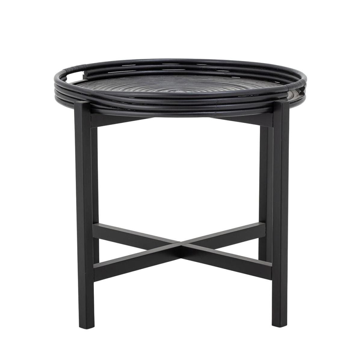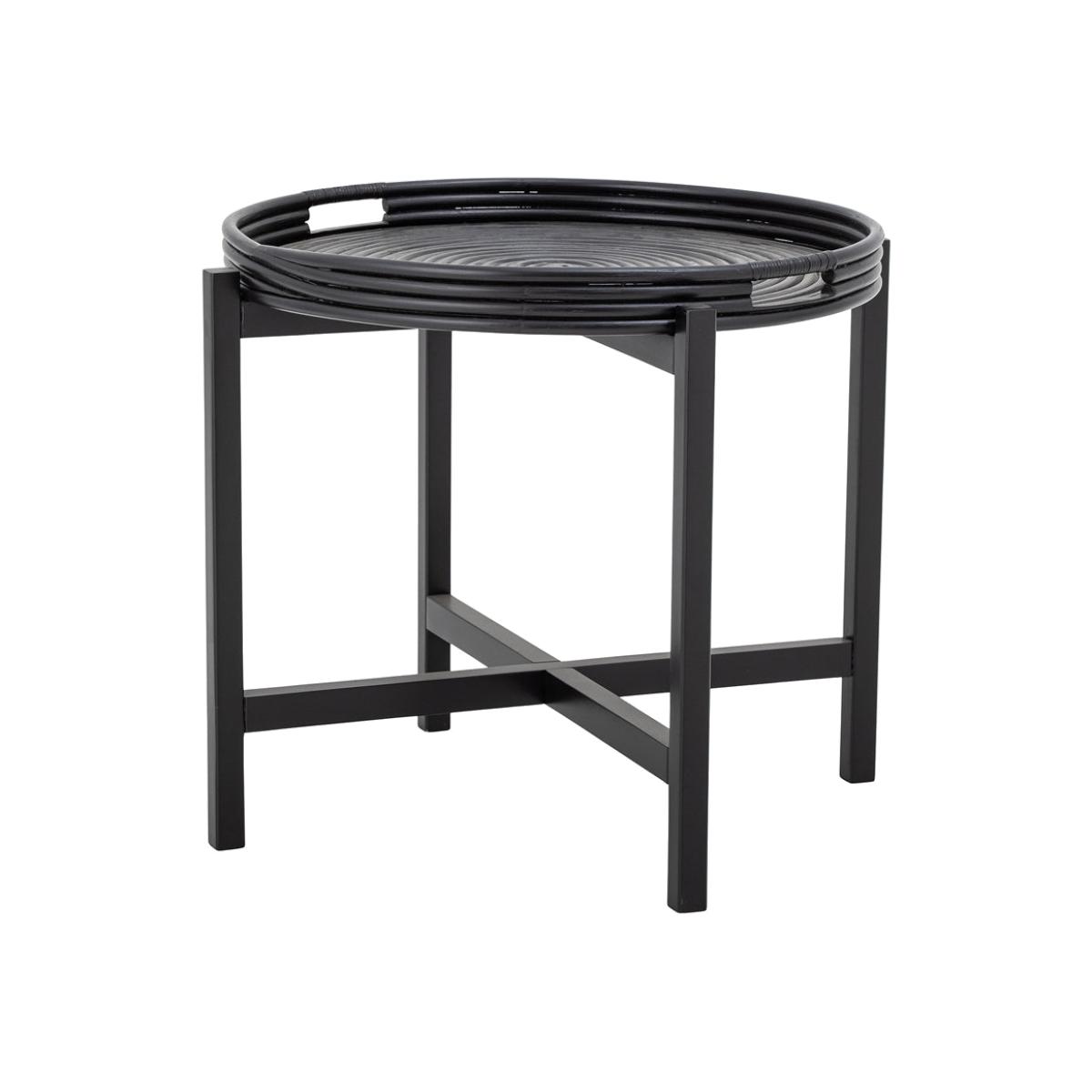 The Milli Tray Table by Bloomingville is a black table with a removable tray in rattan, which creates coziness in any home