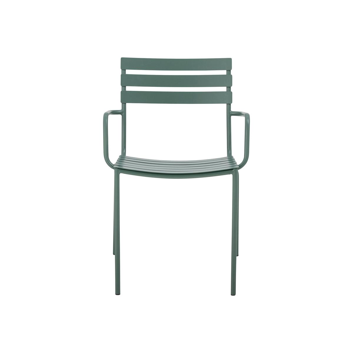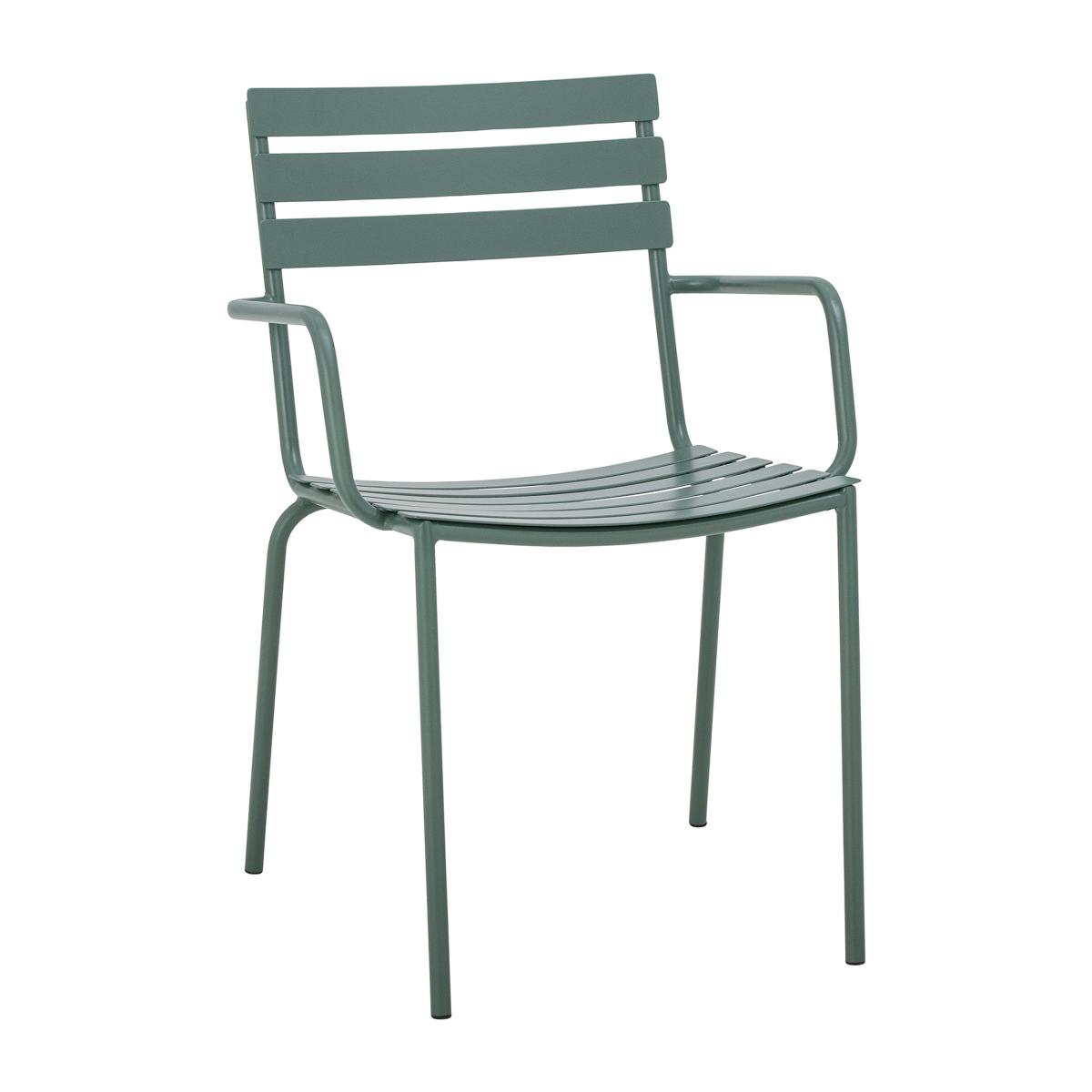 I’m a big fan of that green slatted armchair for its clean lines and durable metal finish - it adds just the right amount of colour without overwhelming a space. It’s equally at home in a pared-back, Nordic-inspired dining nook or on a sheltered balcony alongside potted plants. To style it indoors, pop a neutral linen or wool cushion on the seat and team with a light oak side table for contrast. Outdoors, cluster it with similar chairs around a simple metal or stone table and soften the look with a throw in muted terracotta or soft grey.