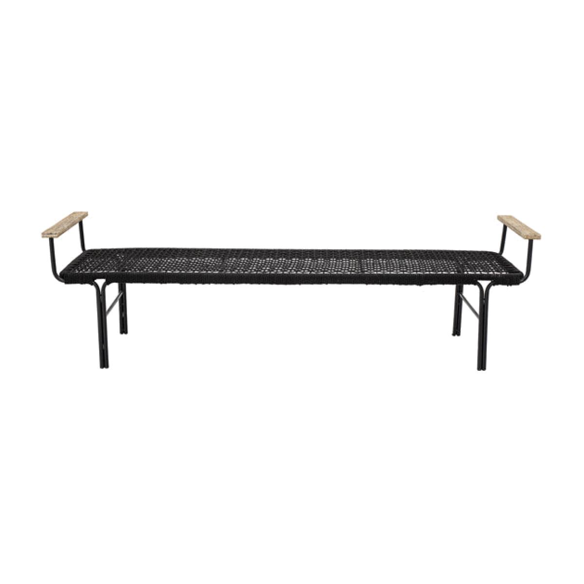 The Bloomingville Mundo Black Bench offers stylish simplicity that would fit perfectly under cover in an outside space or as an indoor feature in your home or business premises. This striking and. View More. The Bloomingville Mundo Black Bench offers stylish simplicity that would fit perfectly under cover in an outside space or as an indoor feature in your home or business premises. This striking and practical piece features a powder-coated metal frame and a hand-woven seat made of black polyester rope. The handles are created using contrasting Acacia wood, and the combined effect is one of effortless chic. The seat measures 160cm and is 50cm deep, making it a comfortable seating choice as well as a stylish one. It is 40cm high and forms part of the beautifully designed and versatile Mundo range of outdoor furniture.