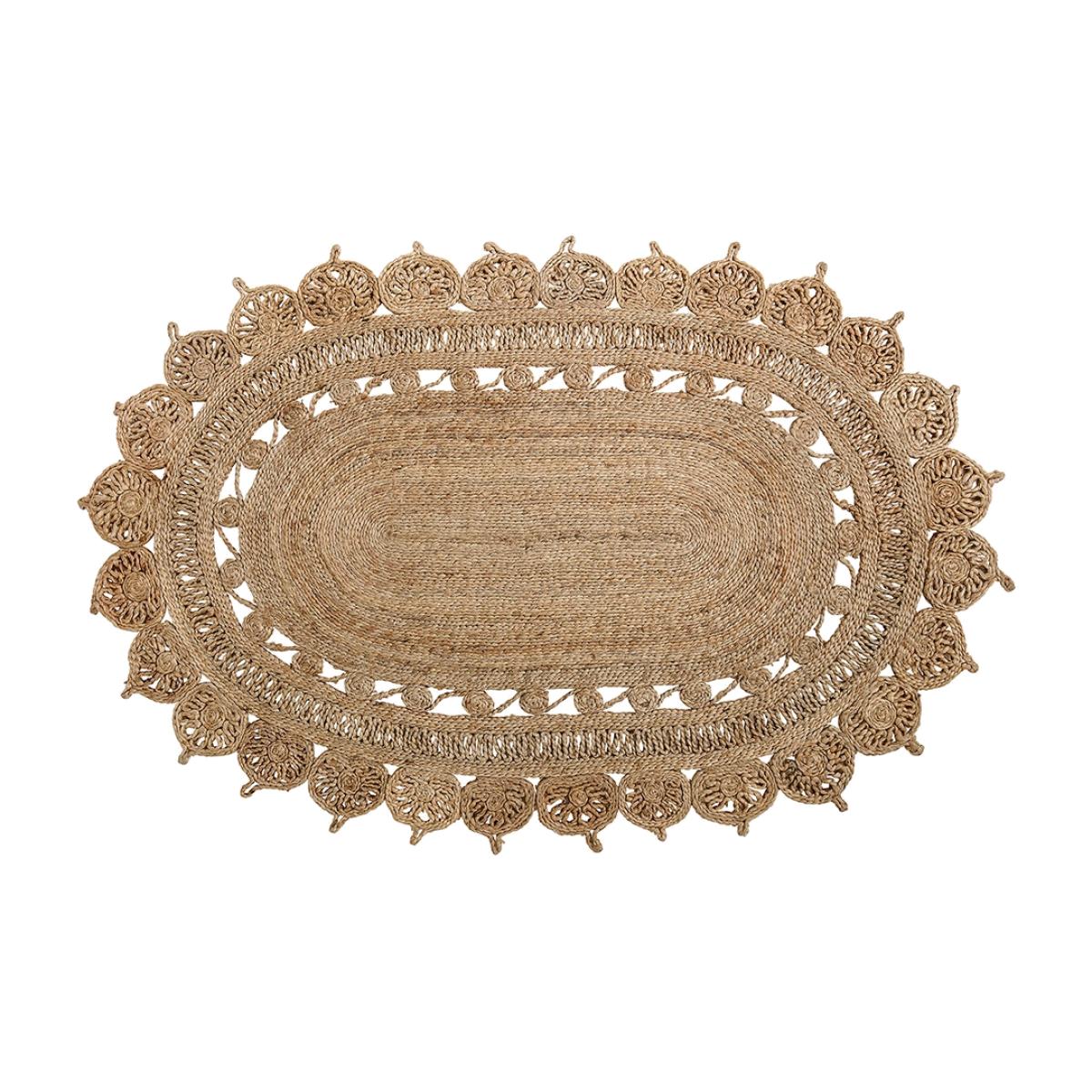 You'll fall head 'oval' heals for this beauty! Okay jokes aside, the Bloomingville Natural Oval Jute Rug is rather gorgeous! Crafted from natural jute, this versatile material has been woven into a decorative design that's sure to be a welcome addition in your home. Style your floor rug in the living room underneath a coffee table and frame your space or add one to the hallway or kitchen to bring a little texture to your interiors. With other natural floor mats available separately, layer the coordinating designs to create an eye-catching arrangement!.