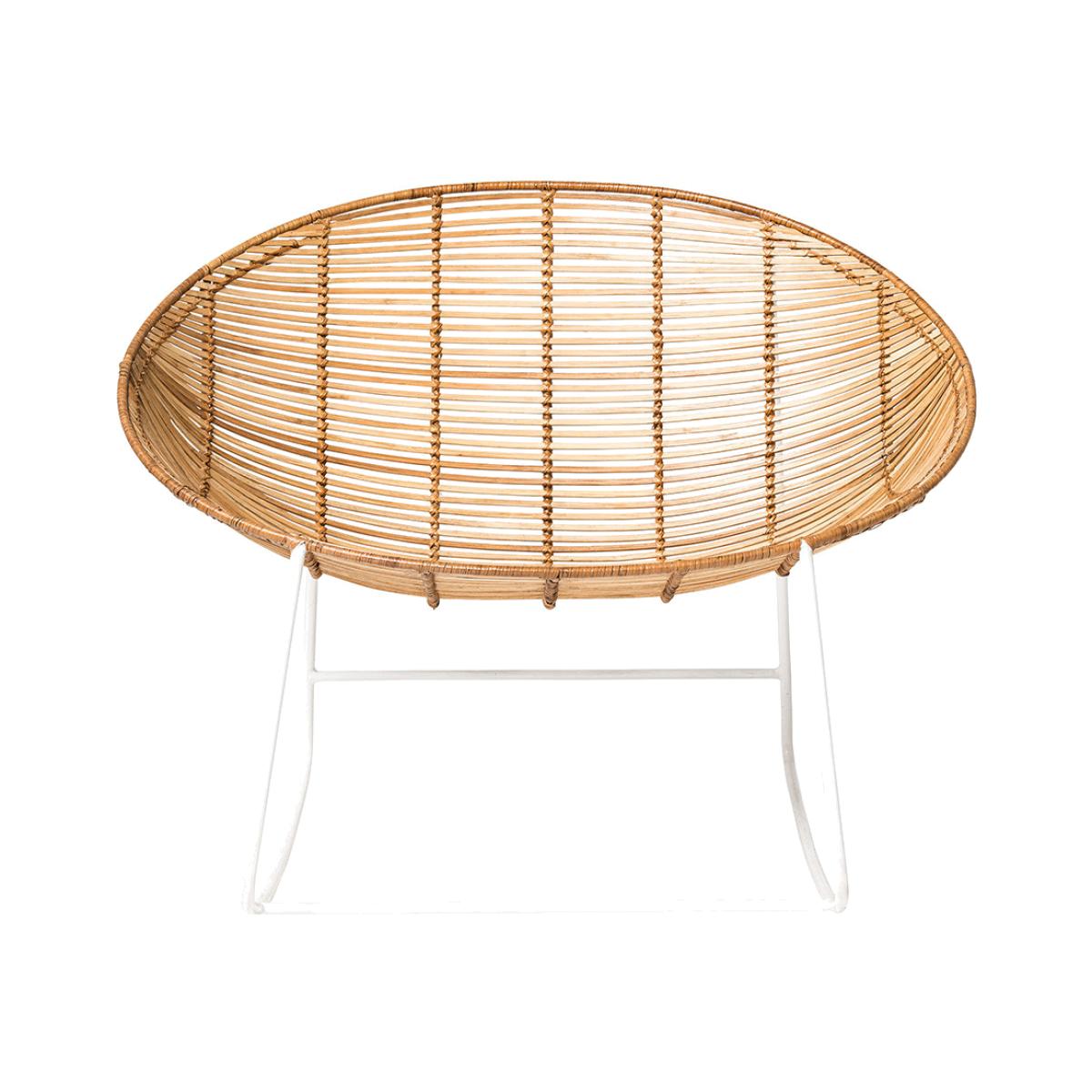 Enjoy a traditional concept with a contemporary twist with the Orinoco rocking chair from Bloomingville. Woven from rattan and featuring a fluid, curved shape, this natural coloured seat sits upon white metal rockers. Perfect for relaxing in your conservatory, mix and match with more chairs from the Rattan collection created by Bloomingville to complete the look in your interior. Key features: * Rocking chair * Material: rattan * Dimensions: H76xW92xD78cm * Natural coloured seat * White legs * Fluid, curved shape * More home accessories available from Bloomingville