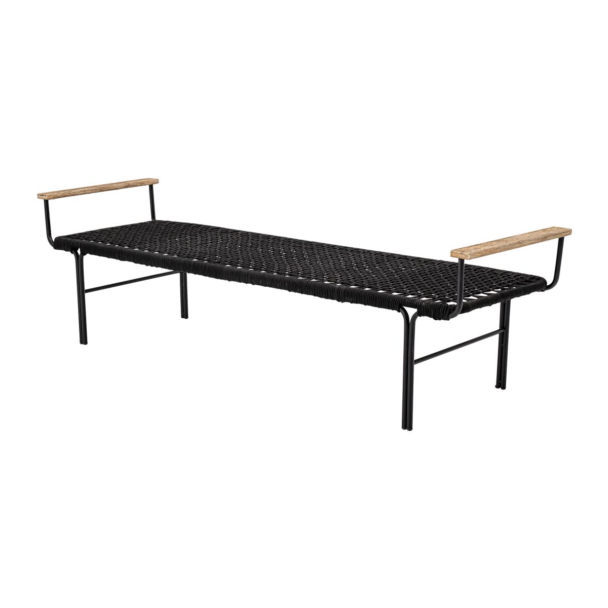 The Mundo Bench by Bloomingville fits both outdoors (under a roof) and indoors. Crafted with a powder-coated metal frame and a hand-woven polyester seat in black, it features Acacia wood handles at the sides. With a seat height of 40cm, seat depth of 50cm, and seat length of 160cm, this versatile bench can be styled with cushions and plaid for a perfect spot for relaxation and coziness.