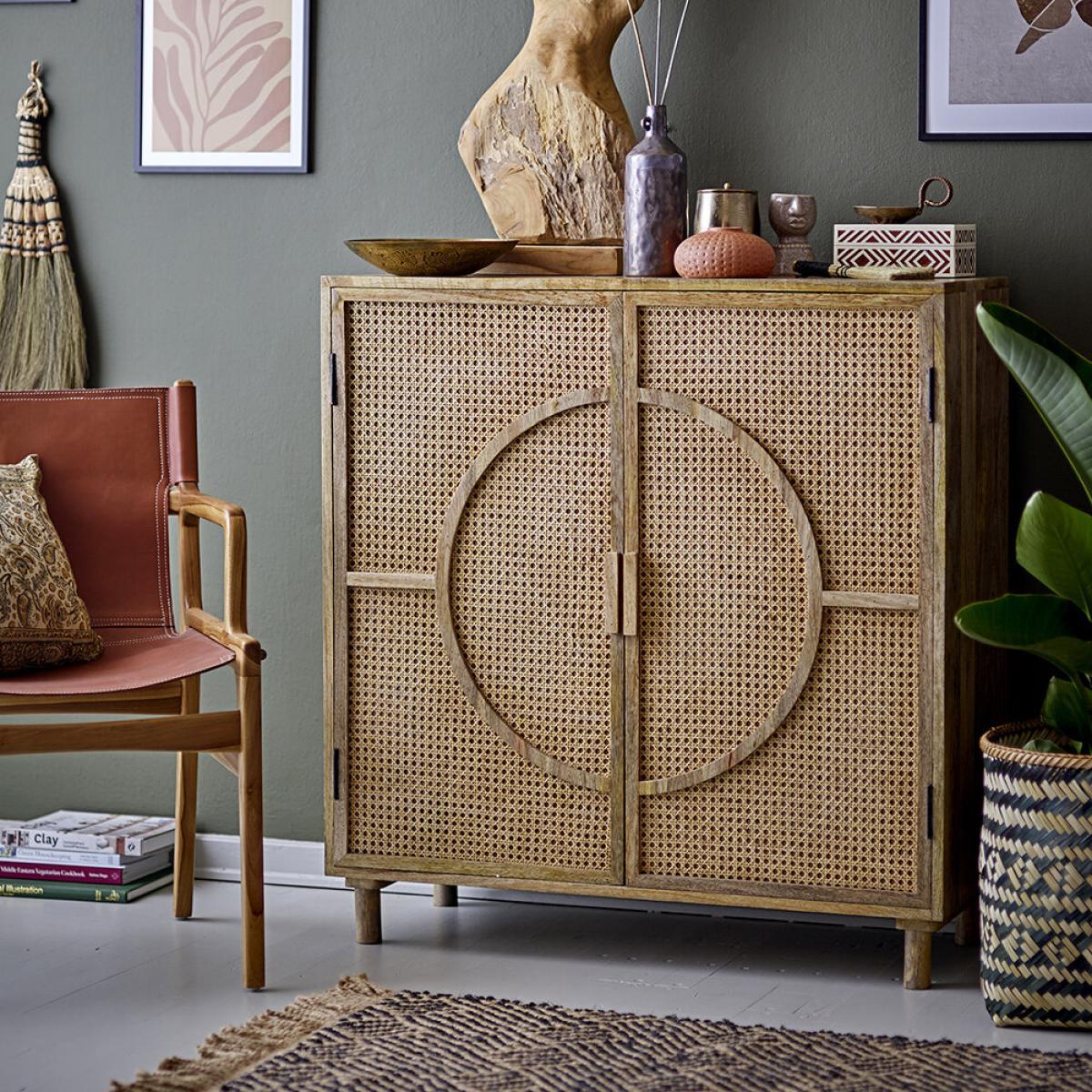 Give your home a bohemian touch with this Pablo cabinet from Bloomingville. Made from cane and mango wood, it features two fixed shelves and a magnetic closure. A wonderful addition to any room, it’s a must-have for those seeking storage space.