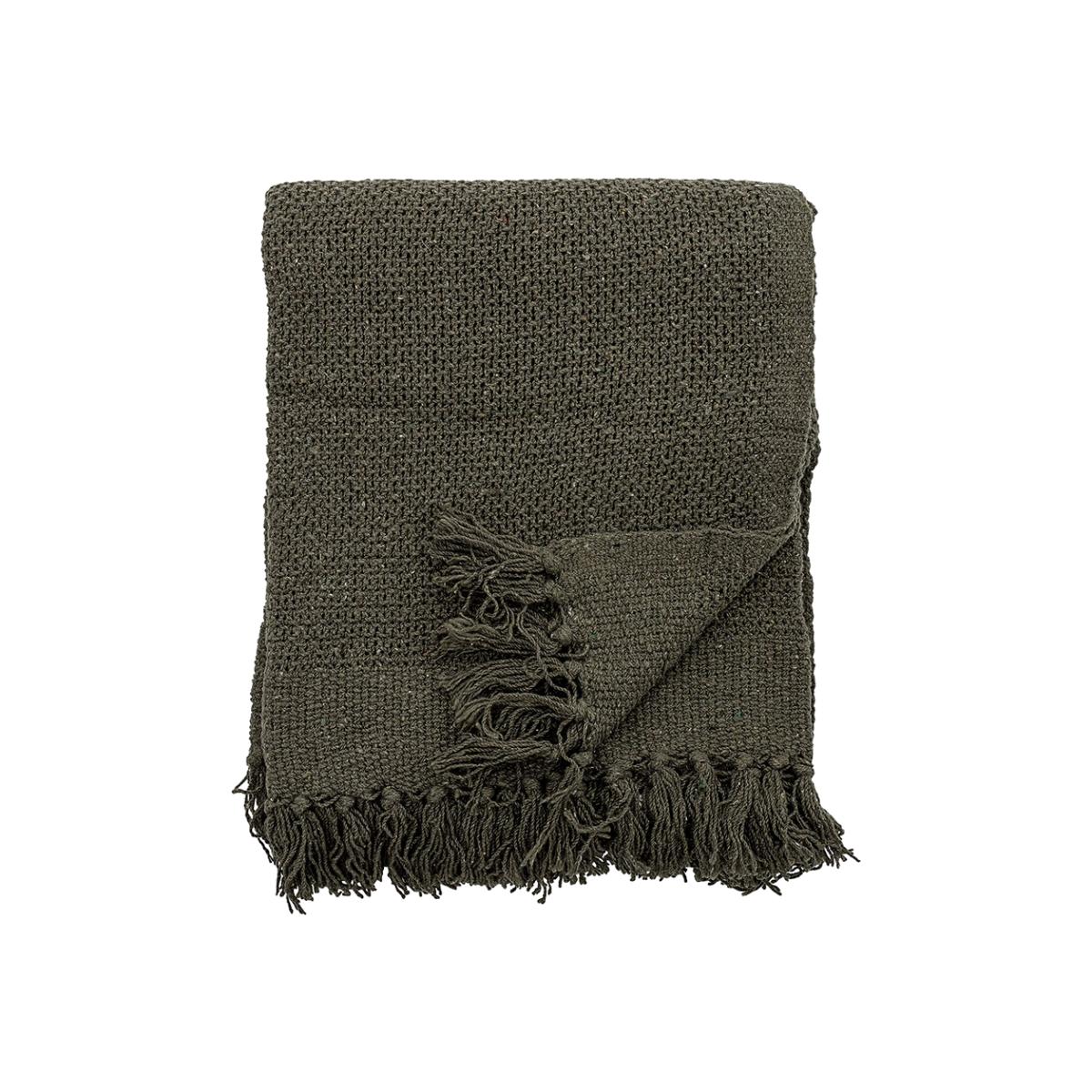 Use this Green throw to inject a touch of warmth and softness to your home. Made from recycled cotton, featuring tasselled details on either end; this gorgeous blanket offers a luxurious texture that is utterly delightful. Perfect for a rainy day snuggling up with your lover, or sit back and relax with your new read. The choice is yours. Alternatively, display this blanket at the end of your bed for when those chilly nights creep in. The perfect home accessory for all lovers of a darker décor, you won't be disappointed with this beauty!.