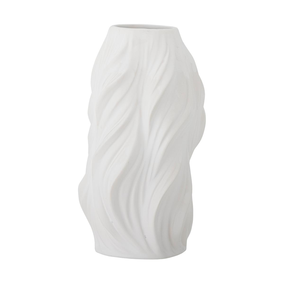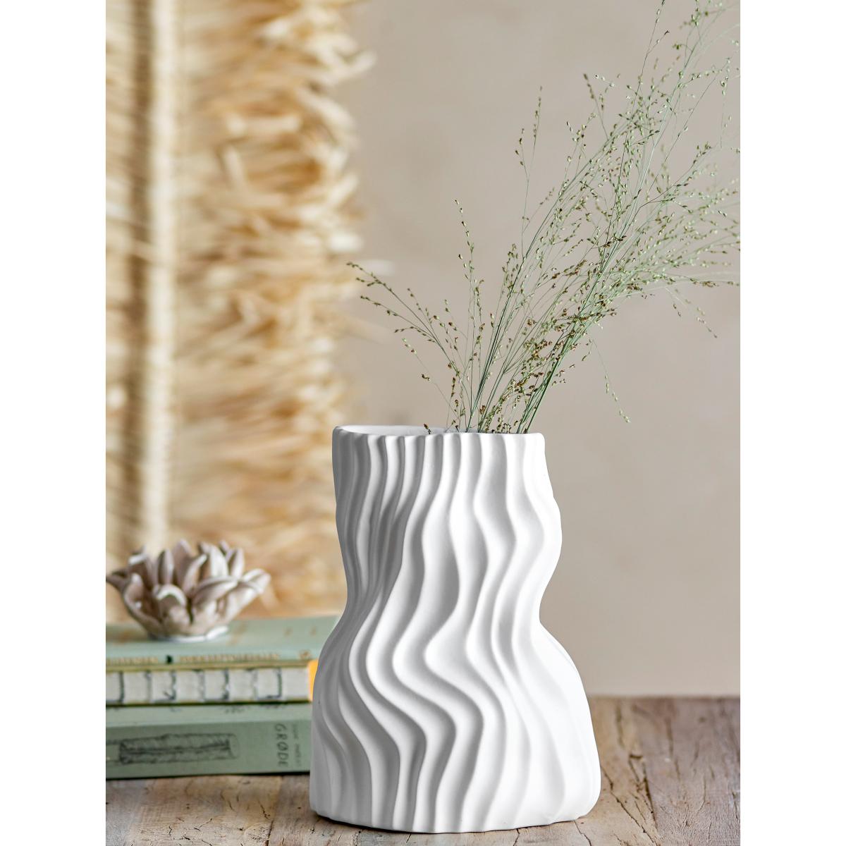 This tall, white vase is a versatile piece that works beautifully in both modern and minimal interiors, thanks to its sculptural, textured surface. I love how its clean, monochrome finish allows it to act as a neutral anchor or a statement piece depending on how you style it. It’s ideal for showcasing a dramatic arrangement of tall stems, branches, or even dried botanicals to add height and interest to a corner or sideboard. For practical styling, consider pairing it with contrasting textures like wood or metal for a balanced look or use it as a standalone sculptural accent in a monochrome scheme to emphasize its form. Its size makes it perfect for creating impact in larger spaces or as a centrepiece in open-plan settings.