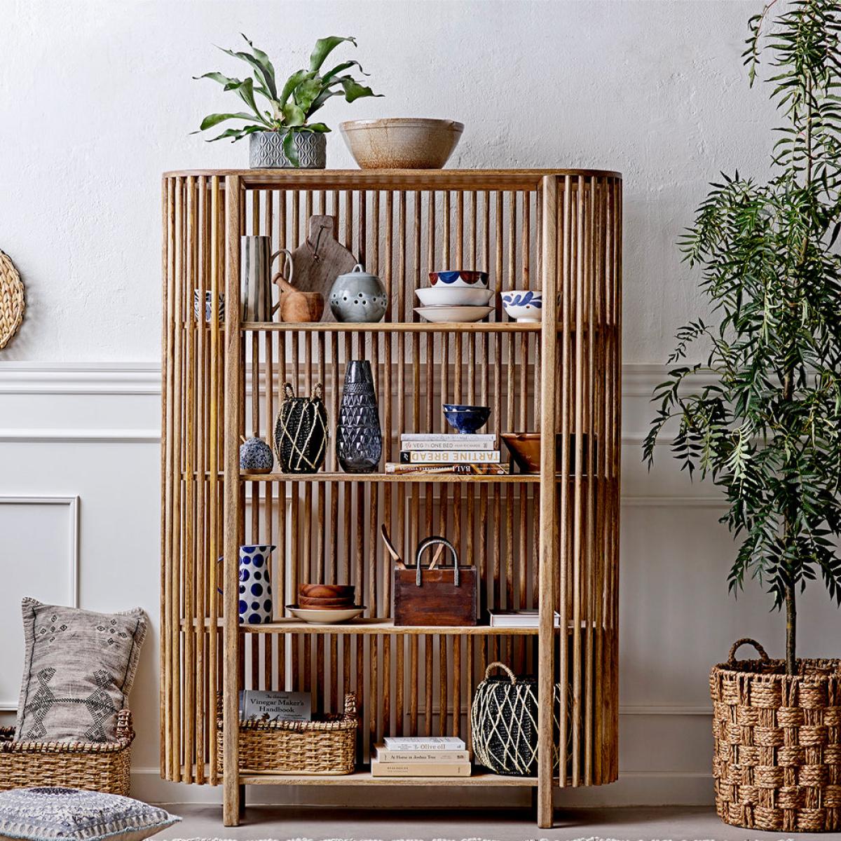 I love this bookcase for its clean, natural lines and versatile style. The brown mango wood gives it warmth and texture, making it an easy fit in both contemporary and rustic interiors. It works well in living rooms, home offices, or bedrooms where you want to display a mix of books, decorative objects, and plants. Practical styling tips include keeping the shelves uncluttered for a modern look, or mixing books with baskets and small accessories for a cosy vibe. Due to its open slatted design, it’s ideal for light-filled spaces and those wanting to add a touch of natural texture to their shelves.