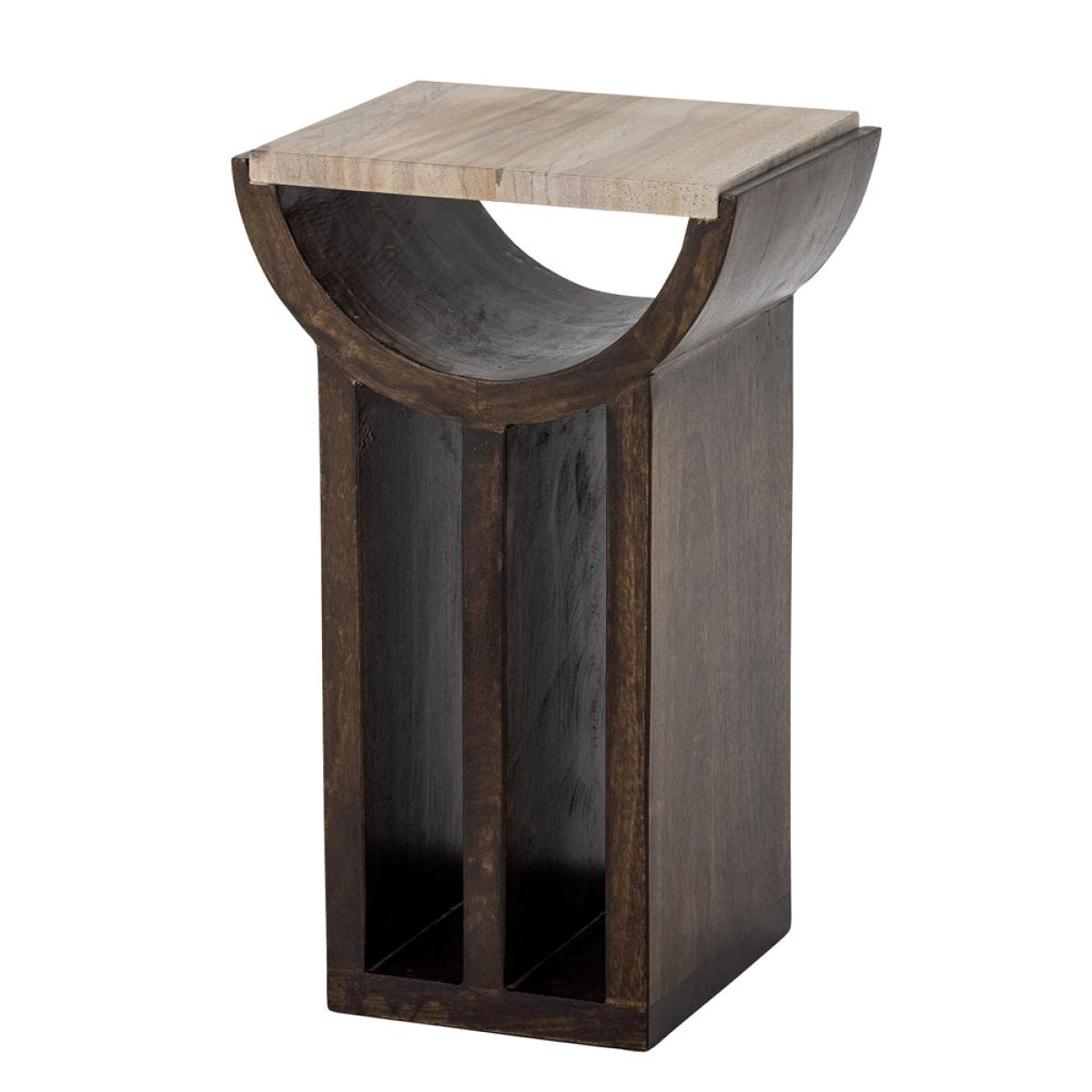 The Saphia Sidetable by Bloomingville is made of dark-glowed mango wood in a sculptural shape. The tabletop consists of cool beige marble. Use for magazines or enjoy as an art piece. It is very suitable for the livingroom, hallway or bedroom. Dimensions: H: 50 x W: 24 x D: 30 cm Materials: Marble Assembly Required: Y Care Instructions:Wipe clean with a damp cloth. No harsh abrasives or cleaners.
