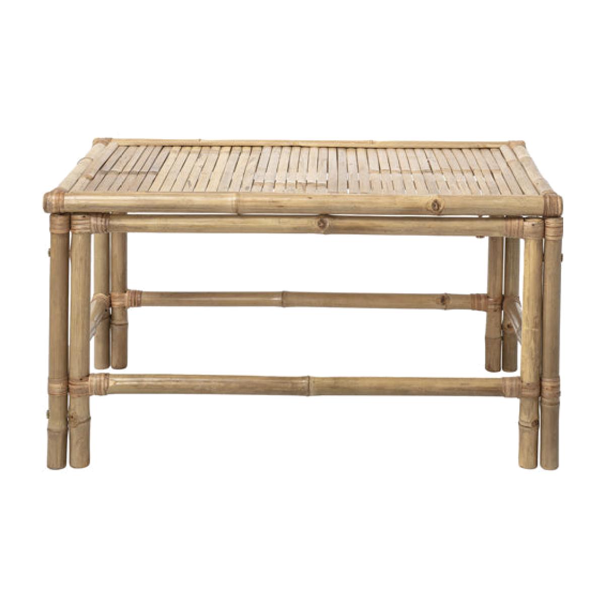 Add a touch of rustic charm to your décor with this coffee table, which will look just as good inside your home as it will outside in your garden. The Sole Nature coffee table by Bloomingville is. View More. Add a touch of rustic charm to your décor with this coffee table, which will look just as good inside your home as it will outside in your garden. The Sole Nature coffee table by Bloomingville is made of bamboo, giving it a natural look that's ideal for an artisanal style. The table top is made of natural bamboo slats, while the table frame is made up of double beams of natural wood. The simple lines of this table, which measures 50cms in height and 90cms in length, make it an ideal partner for cane or rattan furniture being used outdoors too.